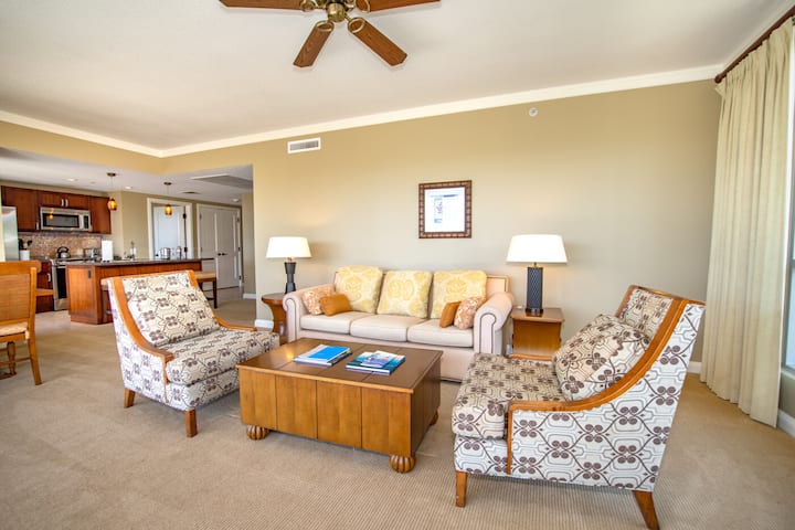 モダンな快適さとトロピカルな魅力が融合した、広々として美しくデザインされたスイートに足を踏み入れましょう。各ユニットには、設備の整ったグルメキッチン、家具付きラナイ、室内洗濯機と乾燥機、豪華なベッドルームとリビングエリアが備わっています。