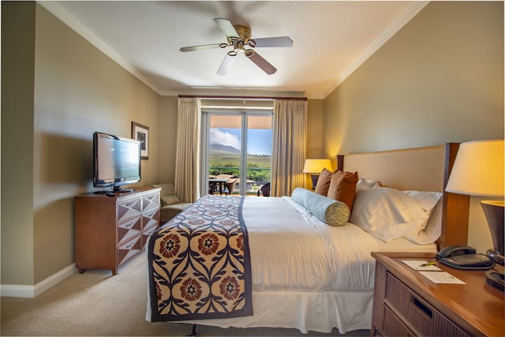 美しい造園された敷地、水上遊び場、または西マウイ山脈を含む絵のような景色;