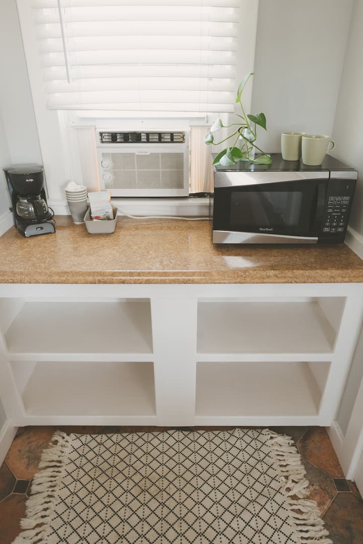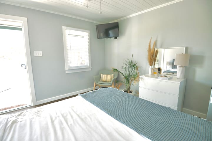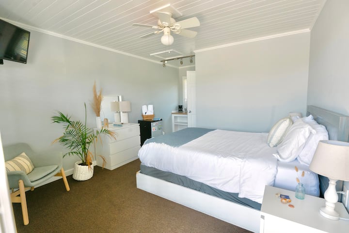 8号室には、クイーンサイズベッド、電子レンジ、コーヒーメーカー、ミニ冷蔵庫が備わっています。リネン、タオル、トイレタリーが用意されています。すべてのユニットには専用の入り口と専用のバスルームがあります。 共用の屋外ポーチとシッティングエリア。ビーチへのアクセスが近いです。
