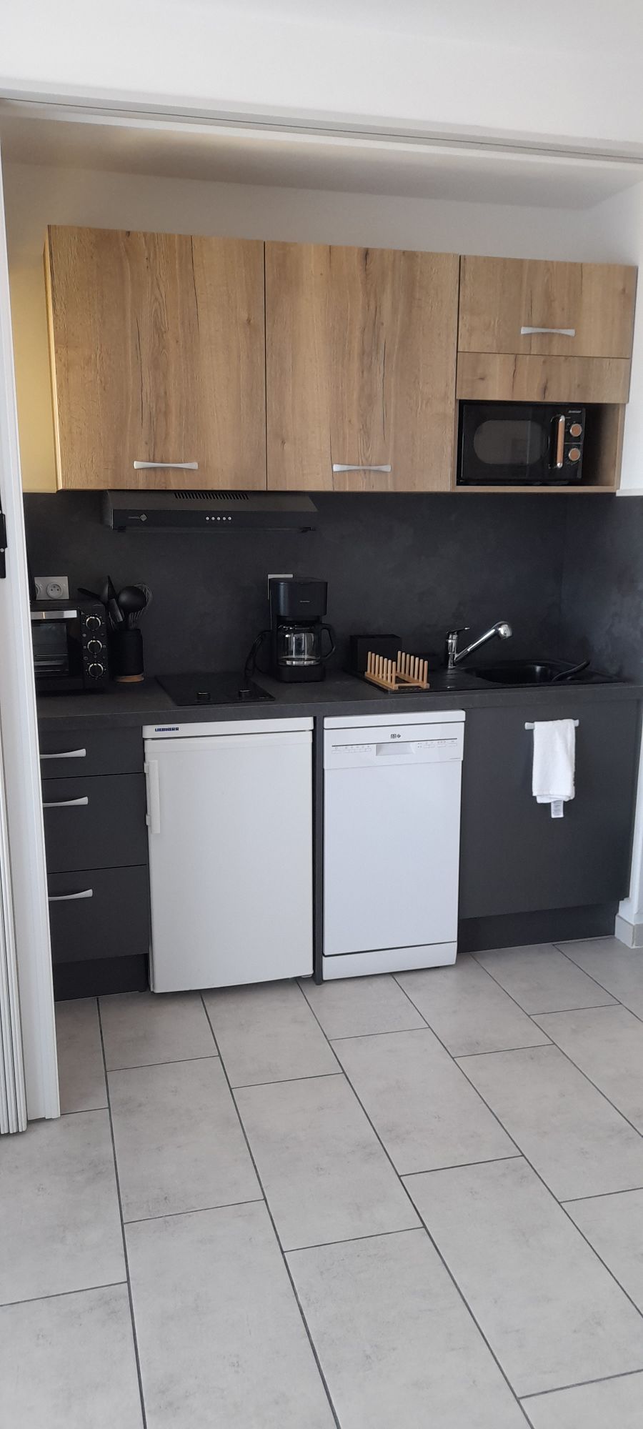 Goûtez l'élégance de ce logement exceptionnel dans une résidence à 30m de la plage ! Entièrement refait avec une décoration moderne et zen, vous y trouverez tout ce dont vous avez besoin avec une orientation ouest et une vue mer toute proche...endormez vous au bruit des vagues... Tout le linge de maison est fourni, le lit et ménage faits...vous n'avez qu'à vous installer sereinement. Vous avez également à votre disposition un box pour garer votre véhicule ou vos vélos dans la résidence.