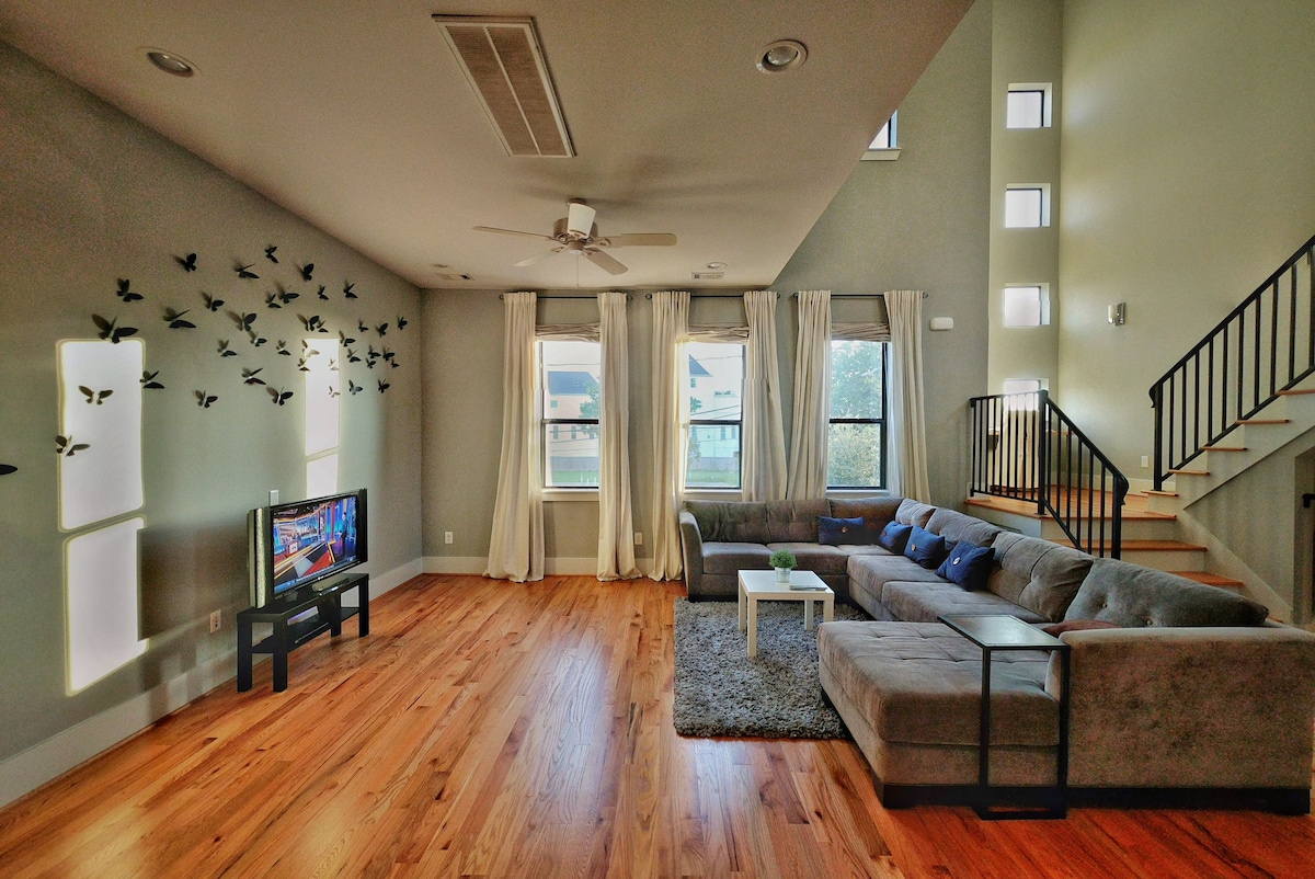 4-story luxury home with city view! Relax in this custom home with spa-like bathrooms, tons of natural light & modern amenities! Great downtown access (a 2-5 minute drive even in rush hour). The central location means easy access to the Galleria, Med Center, Montrose, and the Heights. Includes free street parking and a small selection of breakfast food & drinks. We do our best to use eco friendly & non-toxic products. No parties and no smoking! Only registered guests on the premises. Thanks!