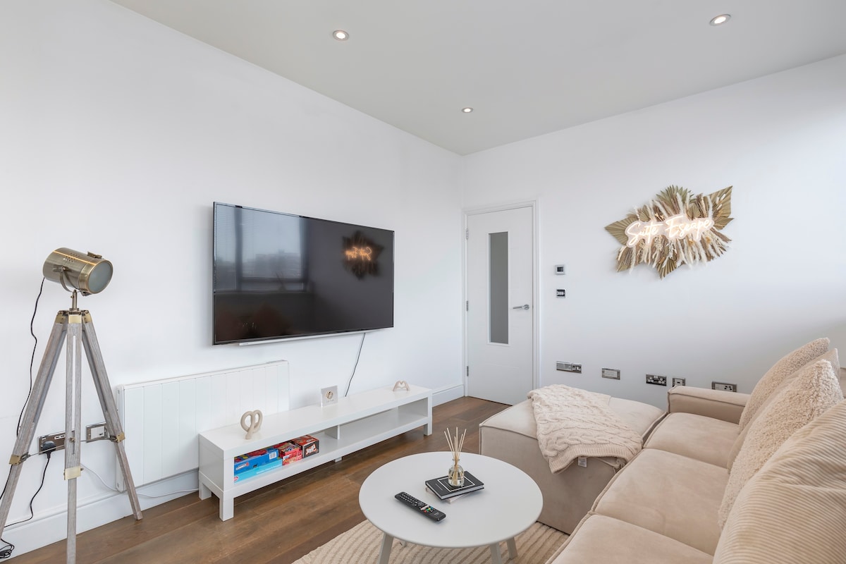 プレストン・パーク駅(ロンドン/ガトウィック)近くにあるおしゃれで静かなアパートで、ブライトン中心部やビーチへ簡単にアクセスできます。独立した玄関を備えた自立型住宅です。 ベッドルーム(キングサイズベッド)、明るいラウンジ(ソファーベッド)、フルキッチン、バスルーム(シャワー)、屋外の中庭を備えています。 ビジネスパーソンや少人数のご家族連れに最適です。高速Wi-Fi、デスク、セルフチェックインを備えており、海辺での休暇や「ワーケーション」に最適です。ペット同伴OKです。 公共交通機関(電車、バス)まで数分、路上の訪問者用駐車場(平日5ポンドの料金)があります。