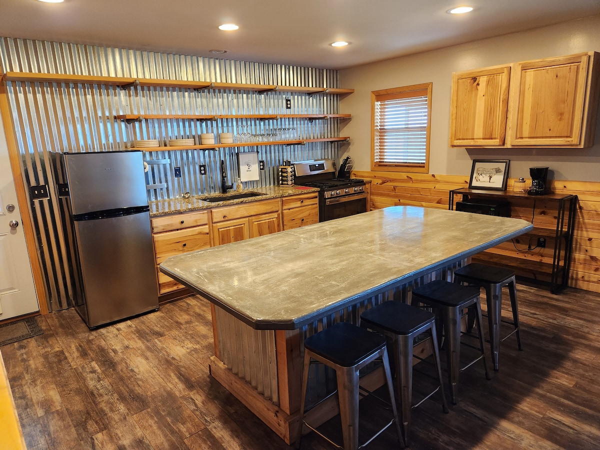 フリントヒルズにある、ベッド2台、バスルーム1台の宿泊先に出かけましょう。農地の広大な景色、豪華なレザーソファ、Roku TV、ガスコンロ付きのフルキッチン、洗濯機・乾燥機、Starlinkインターネットをお楽しみください。パティオでコーヒーを飲んだり、夕日を眺めたり、フェンスで囲まれた庭でペットやお子様と安心して過ごせます。新鮮な空気、静かな時間、農場をイメージした快適さがあなたを待っています。ご滞在をさらに特別なものにするために、農場のお店で買える追加のものについてお問い合わせください。