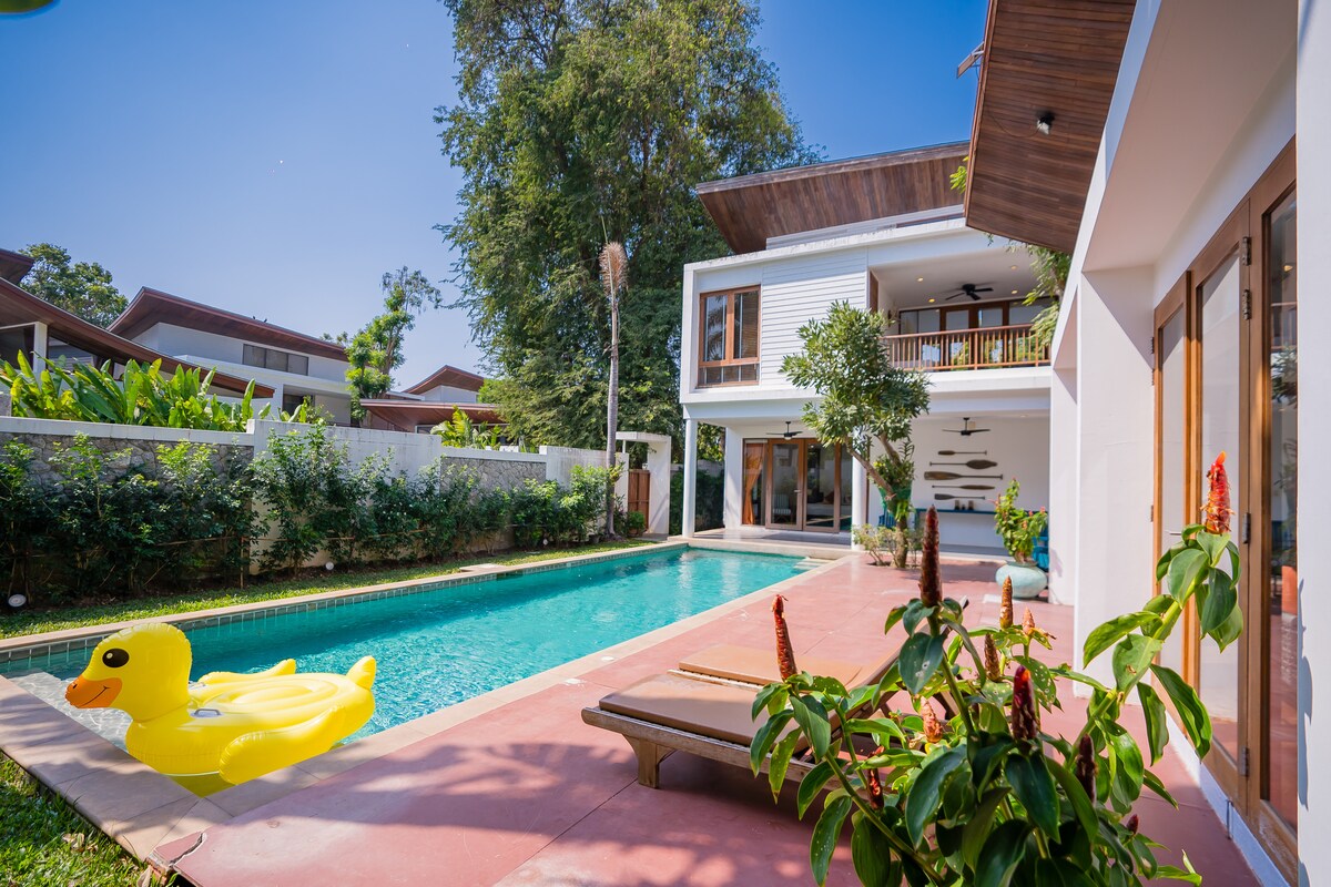3ベッドルームの新築プールヴィラ、キッチン&キッチン用品、洗濯機、広いリビングルームが完備されています。海辺まで徒歩1分で、海の景色、海辺のバー、ライブバンドとシックなショッピング体験が楽しめるため、家族連れ、大人数のグループ、ハニームーン旅行に適しています。無料Wi-Fi!! 「シーンスペース」まで徒歩1歩 「プレンワン市場」まで車で5分 「ヴァナナバ・ホアヒン・ウォータージャングル」まで車で16分 「ホアヒン夜市」まで車で10分