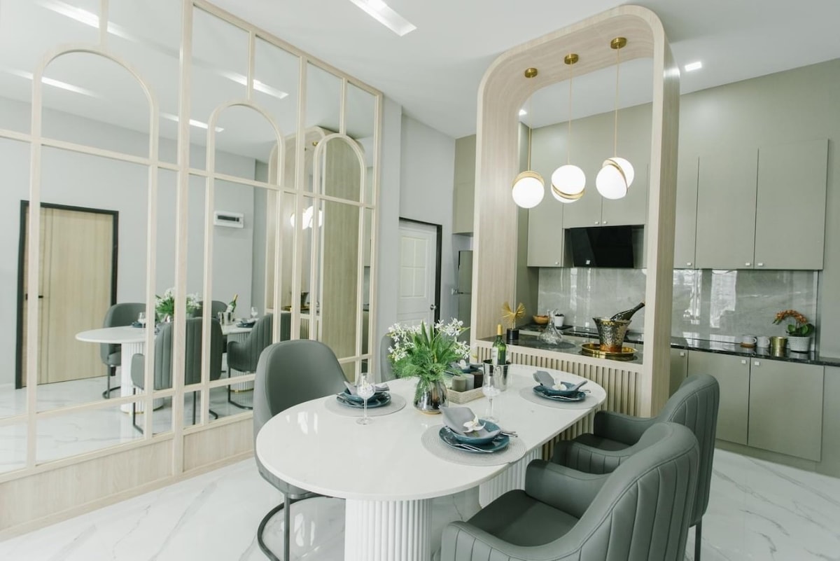 リラックスして、超一流の生活を体験してください!あなたの幸せのために、すべての角がデザインされたモダンなミニマルスタイルの家 豪華なデザイン:居心地の良い美しいベッドルーム、広々としたダイニングルーム、プライベートな仕事/リラックスコーナー すべての機能が完備:内蔵家具とモダンなキッチンが完備されています。 リラックスできる雰囲気:自然光が差し込み、静かな宿泊施設で心地よい色調を楽しめます。