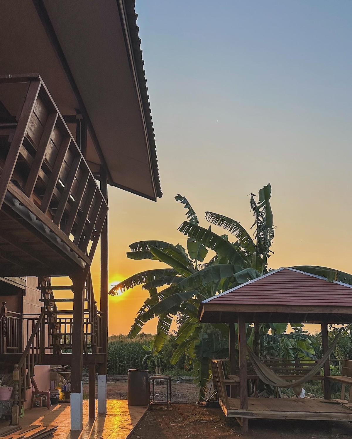 📍カオ・ファノムルン。朝日を眺めるには朝12時です。 📍カオ・プラ・アンカー、7 km。 バンチャロンスクの織物染めの手工芸品を📍見る5 km。 📍ブリーラム、エレファントスタジアム、レーストラック、カオクラドン64 km。 上層階:部屋2室、水道1箇所、エアコン2台、台所1箇所、ゲスト受付1箇所。チャンヤイの外側。 1階:オープンルーム3室、浴室1室、エアコン1台 家の周り。とても開放的。便利な駐車場。 * Googleマップのルート * 情報収集や予約ができます。 バンで夕日を眺める
