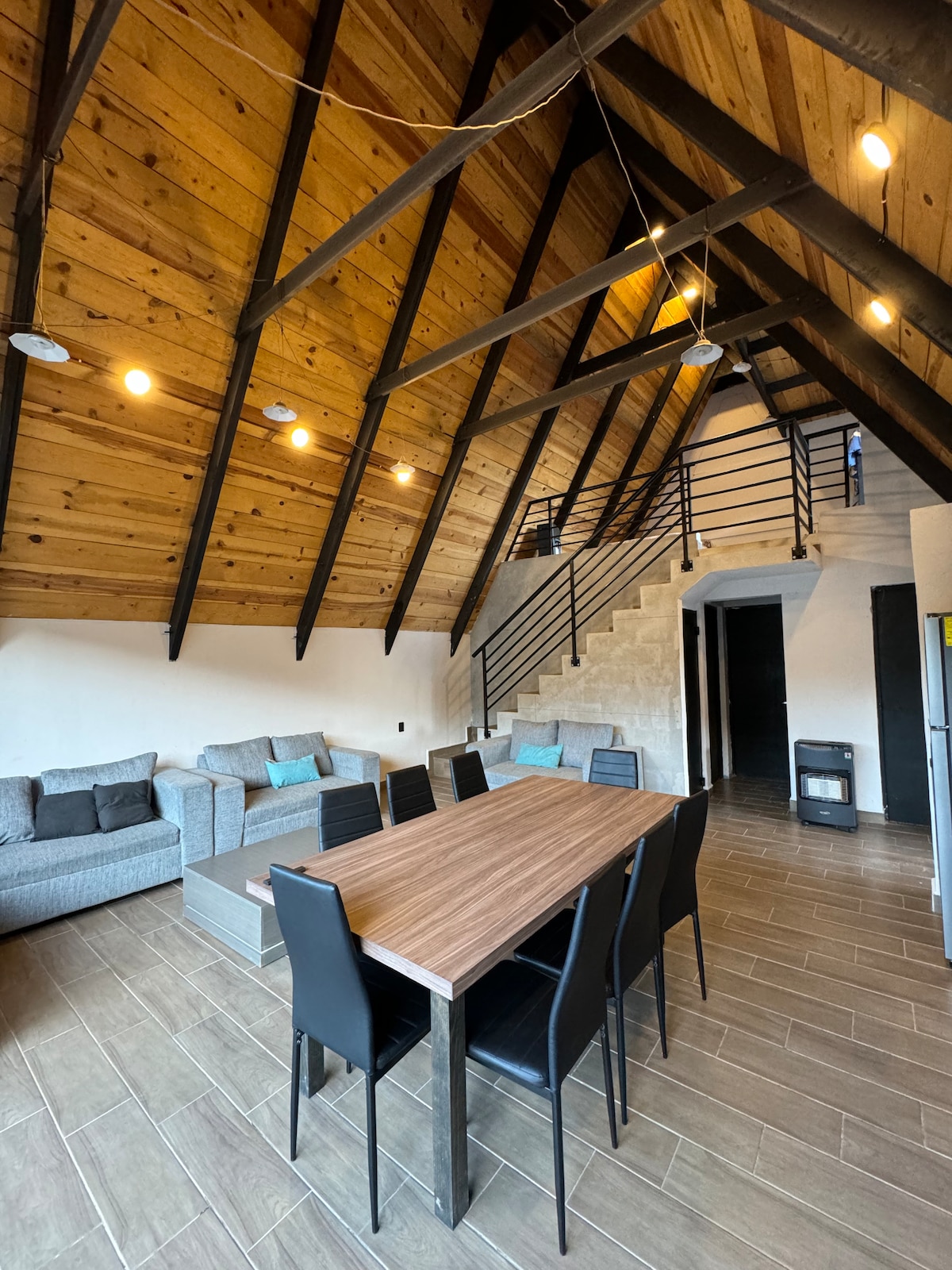 Cabaña El Respiro Descanso y Aventura コアフイラのエル・ディアマンテにあります 最大定員6名様 ダブルベッド2台とソファベッド1台 ウエンシリオ料理料理 テレビ・Wi - Fi 屋内・屋外ダイニング Asador フルバスルーム1箇所
