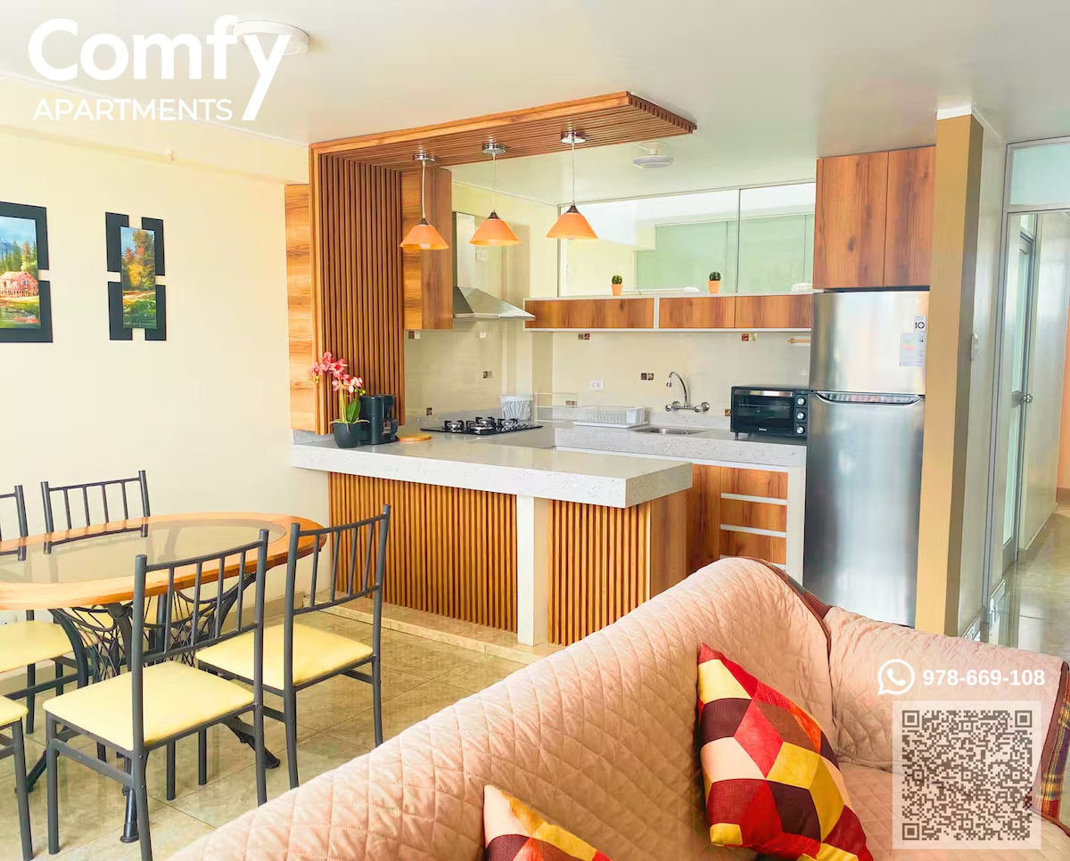 この静かでエレガントな真新しいアパートでリラックスしてください。 ワンカヨの繁華街から10分の場所にあります。 モダンな建物の5階にある家具付きのアパートです。 山の素晴らしい景色が眺められます。 すぐに使用できるガスコンロ。 NetflixとYoutubeが観れる55インチスマートテレビ。 100 MbpsのインターネットとWi-Fi/イーサネット接続 パートナーや友人と過ごすのに最適なアパートです。 駐車場は別途レンタルできます。