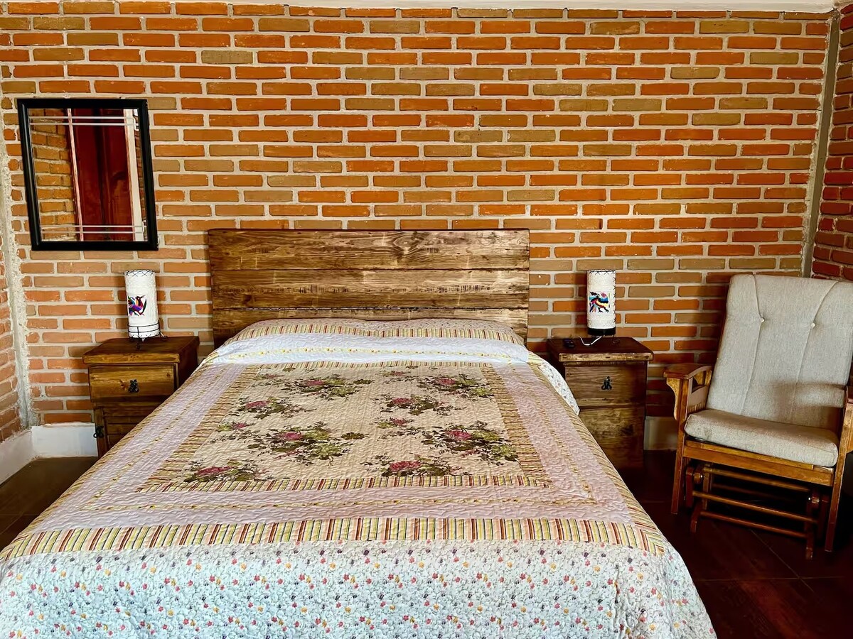 キャビンはエル・ゼンボのエコツーリズム公園内にあり、ウアスカ・デ・オカンポの中心部から車で7分です。 キャビンには3つの部屋があり、1つ目は専用の入り口とフルバスルームを備えています。2つ目と3つ目の部屋は同じドアでつながっています。 キャビン内にはキッチンや暖炉はありません。 快適な滞在に必要な食堂、バーベキューグリル、ガスグリル、キッチン用品を備えたテラスがあります。