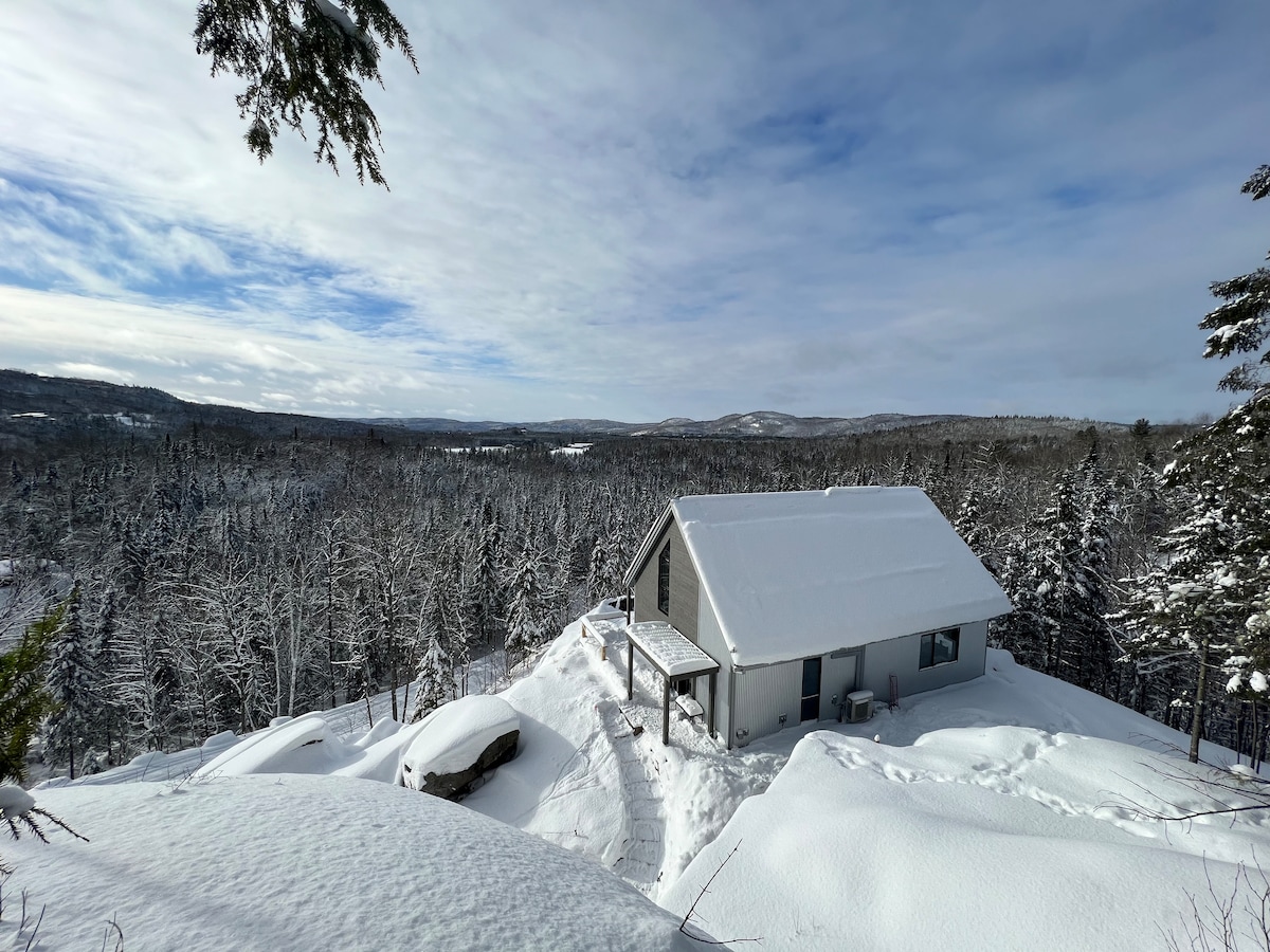 ★モン・トランブランで最もユニークなシャレーのひとつ★ ユニークで人里離れた、建築家が手がけたガラス張りのログハウス トランブランの木の上にあります!Sköv (デンマーク語で森)は、ガラスのユニークなデザインが景観に溶け込んでおり、快適さと贅沢さを満喫できます。 自然のシンプルさと現代的な贅沢さが融合した、壮大なガラス張りの建築空間です。モン・トランブランの村から10分、ローレンティアンにあり、パノラマテラスと専用ジャグジーを備えています。敷地面積1,200エーカーの共有土地にある、カナダ人デザイナーによる設計の建物です。