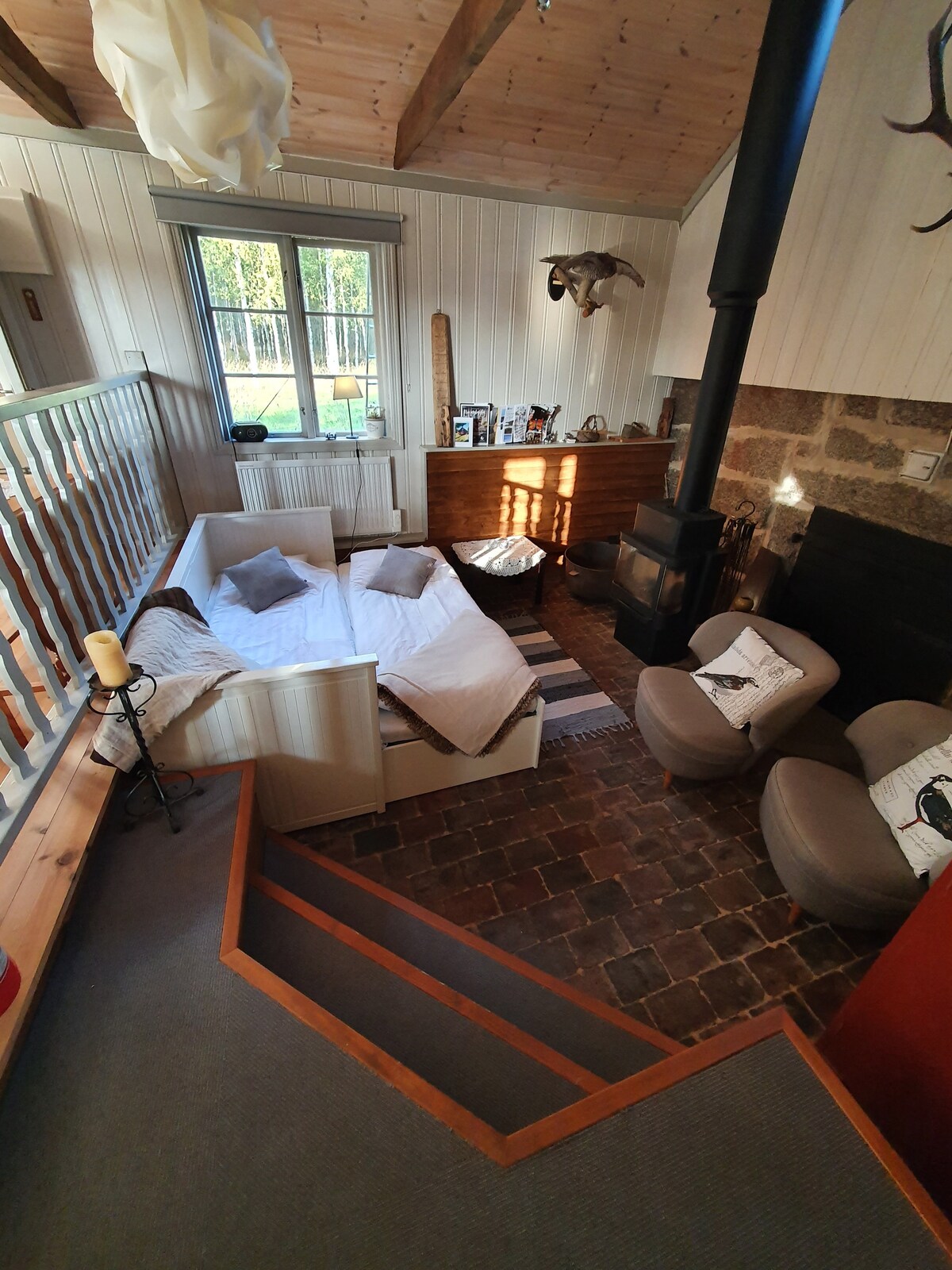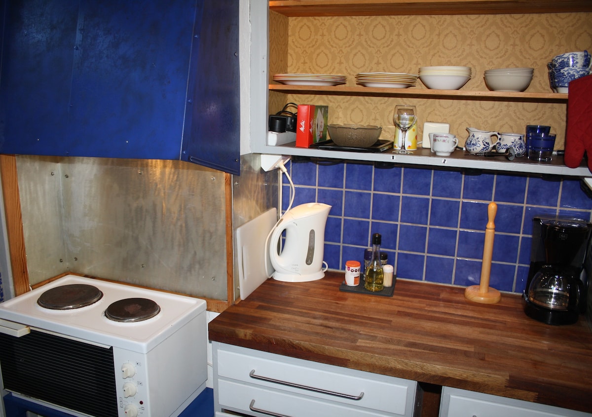 この小さな宝石は、ヴェストマンランドのサーラから北に1マイルの小さな村デルボにあります。Leasの地下室は、約25平方メートルの小さな家で、一年中標準的な設備が整っています。長期滞在の場合は自炊が可能ですが、一晩だけの滞在でも大丈夫です。Leasの地下室は、天井が高く、暖炉、キッチン、トイレ、シャワーが備わっており、上品に装飾されています。ダブルベッド(160cm)と2人用のソファベッドがあります。また、Wi-FiとChromecastを備えたモニターもあります。