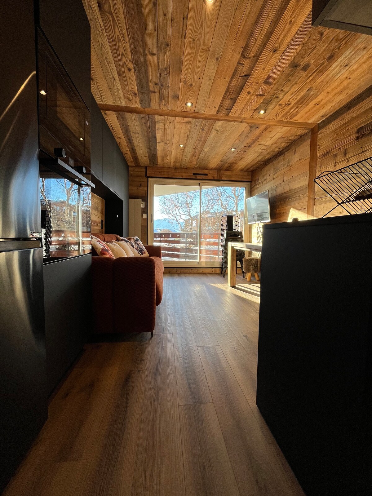 アルプの40平方メートルの古い地区の改装された❤マンション 南☃️向きのテラスは手入れが🌞😎行き届いており、快適です。 ショップ、パッケージを販売する観光オフィス、ケーブルカー🚡センターからの出発に近い理想的なロケーションです。 建物を出ることができます。スキーを安全な場所に置いておき、スキーに戻ることができます。住居の近くには無料🎿シャトルがあります。 コンドミニアム専用の無料駐車場。 滞在期間中、車両の乗車を中止することができます。