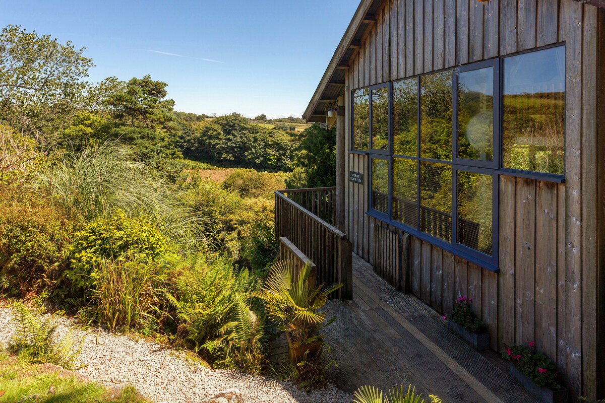 ツリーハウスは、建築的に設計された2名様用のお部屋で、片側に専用の屋根付きバルコニーがあり、素晴らしい庭園と田舎の景色を眺めることができます。 もともと有名な版画家のスタジオだったこの場所は、今では快適に家具が配置された光に満ちた大きな聖域となっています。床から天井までの窓(ブラインド付き)、設備の整ったキッチンを備えた広いリビングエリアがあります。2階はロマンティックなスイートベッドルームです。このツリーハウスは、人里離れた場所でのんびりと過ごすのに最適で、ペンザンスまで徒歩10分です。