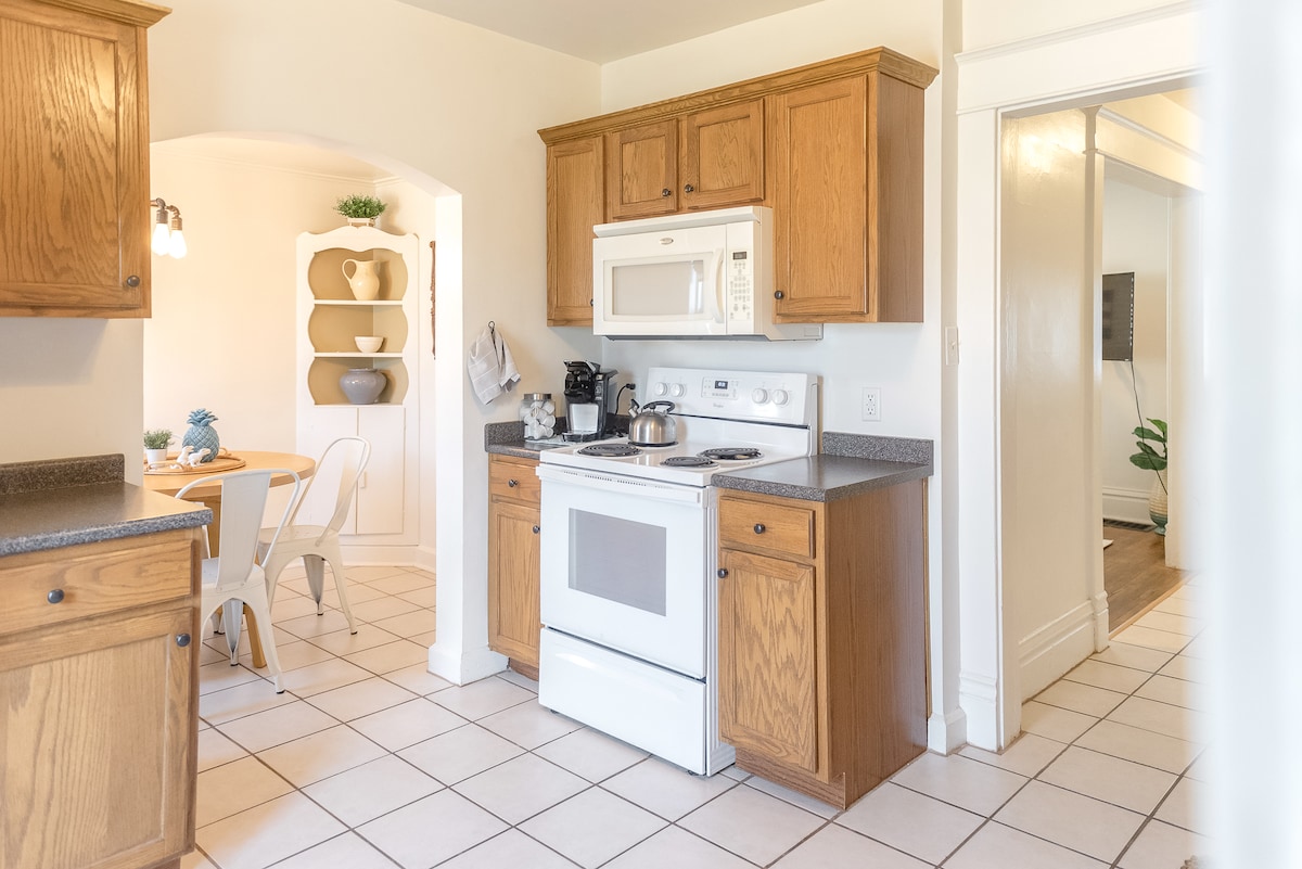 こちらの落ち着いた宿泊先で、ご家族一緒におくつろぎください。 または、このエリアで働きながら長期滞在を予約してください。 リバービューは2100平方フィートのデュプレックスです。 1950年代に建てられたこの建物は、時を遡るような雰囲気で、中世の魅力を保つために改装されました! 一番の魅力は素晴らしい眺めです。 このリバービューはデモイン川を見下ろす崖の上にあり、一年中美しいです! **暖炉は使用できません**