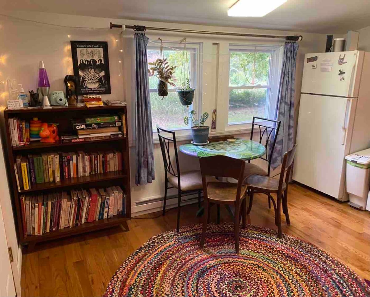 Kick back and relax in this cozy styled cottage! Centrally located near shopping plazas including Shoprite, Walmart and Marshalls. Also close to eateries, fast food restaurants, and Resorts World Casino. Explore the Catskills and come back to stay in a warm cottage. Although it is centrally located, it's pushed back enough that you still get the country living feeling. Located on 2 acres of land, you're sure to hear the birds chirping! There is a pull out couch available for an additional guest.