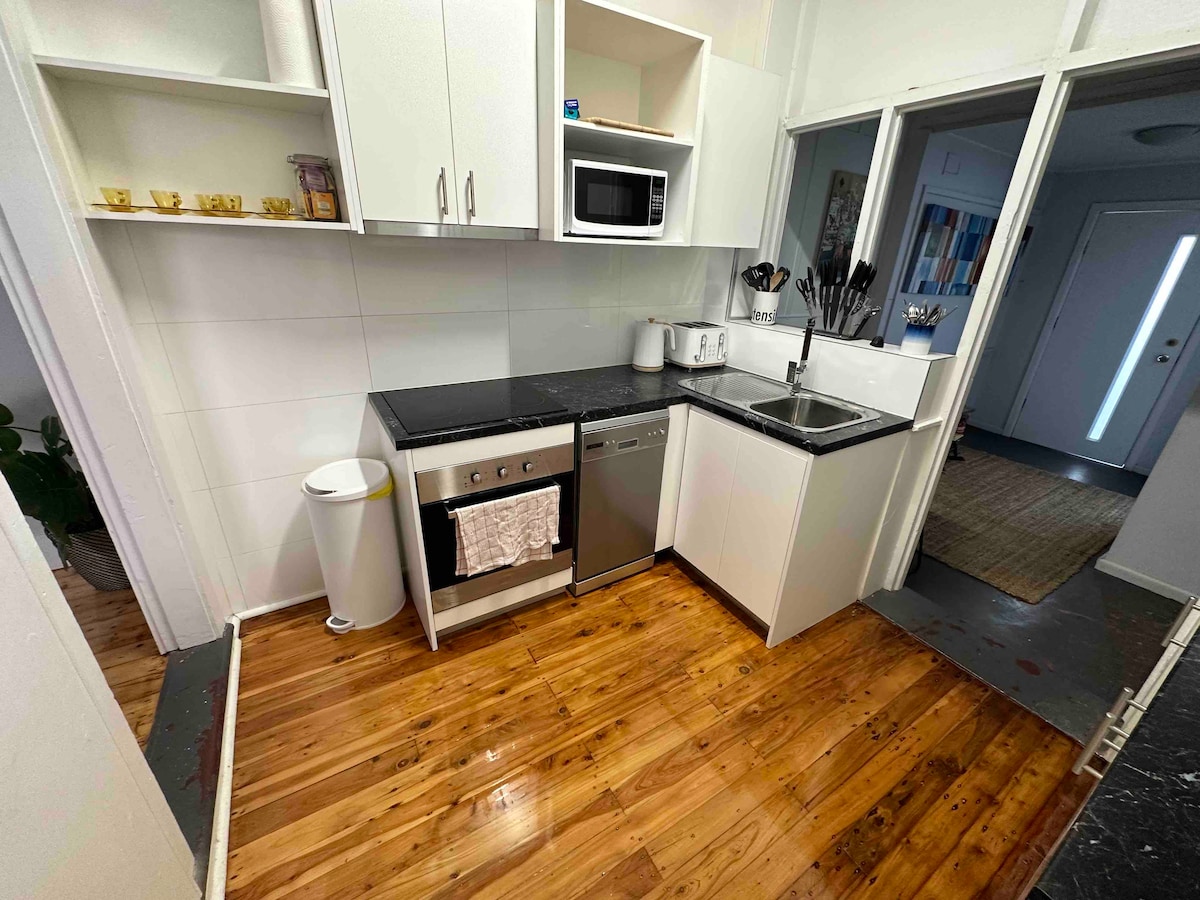 列車やライトレール駅まで徒歩圏内の1ベッドアパート。 私たちの目標は、快適なご滞在に必要なすべてのものを提供し、ご自宅のようにお過ごしいただくことです。 - 1階の高台にあるアパート、わずか3段の階段 無料の高速Wi-Fi -裏庭にオフストリート、前面に無料の路上駐車場 - 快適で硬めのポケットコイルのダブルベッド - 洗濯機と乾燥機 - ガスコンロ、オーブン、食器洗い機を備えたフルキッチン - お子様/3人目のゲスト用のシングルサイズの追加布団(リクエストに応じて) 信頼できるホストサポート