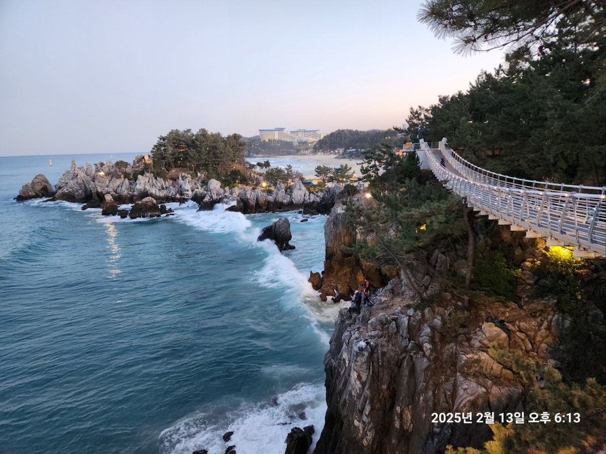 ゲクソク民泊: 海辺の大きな岩の上にあるユニークな60坪の高級住宅です サーフィンができる大鎮海水浴場まで5分です。釣りもたくさんできます ベランダ30坪から・リビングルームの寝室から海がよく見える素敵な場所です。隣の家に気を遣う必要がなく、海を見ながら休んだりおしゃべりしたり、子供たちが屋内で思いっきり走り回るのに最適な場所です。 広々としたリビングルーム、広々とした客室3室、30坪のベランダからは涼しい海が見えます。ベランダでは子供の注意が必要です。 宿泊中の連絡は010、6212、5073 いつでも連絡できます 連泊割引があります はい、ゲグソク民泊です 駐車スペース:ムクホ消防署の横の路地どこでも余裕〜 ここは田舎だから〜 墨湖消防署からすぐ見える ジグザグの23の緩やかな階段 75歩後、右側の大門まで合計1分 上がります ゲクソクゴロク通り(ノンゴルダム横道) 感性の路地スロウシティ 漁村です 魚市場10時方向に歩いて5分、安い生魚を食べることができます ベランダで食べると癒しそのものです ホテルよりも清潔な日光シャワー布団をご用意しています。清潔な環境のために室内は絶対禁煙です 犬は1匹のみ 清掃料金30,000ウォン