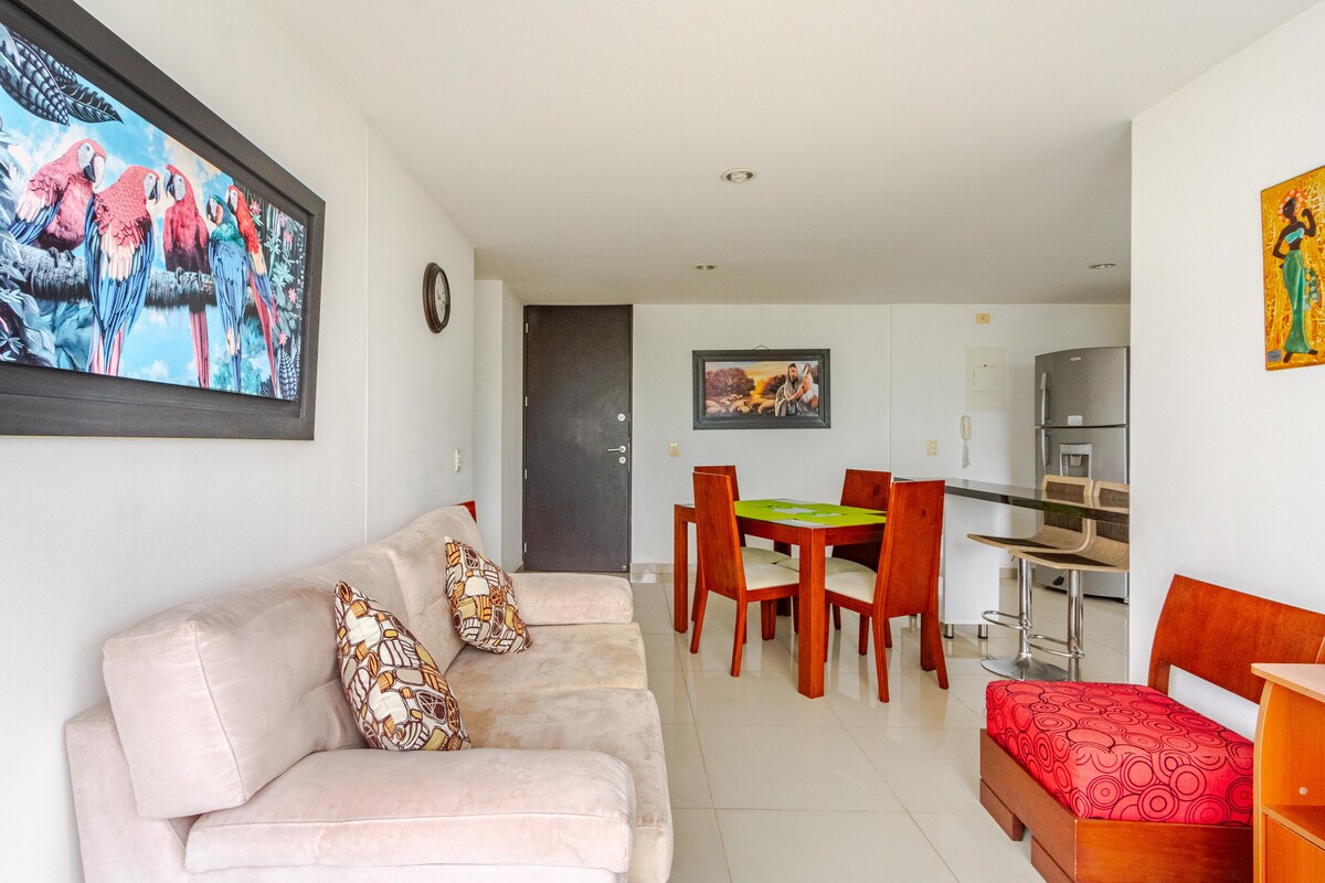 美しいアパート、60メートル。山の素晴らしい景色、最高の気候、100%家具付き、そして完璧なロケーション。 6名様用の3つの客室、標準ケーブルテレビ、120mgsのWi-Fi、2つのシャワーで温水、家電製品:冷蔵庫、洗濯機、ミキサー、アイロン。屋根付き駐車場、プール、子供用プレイグラウンド。 車で8分のところに、C.C.ラ・エスタシオンとアクア、5つのスーパーマーケット、ガソリンスタンド、銀行、レストランがあります。車でアクセスできる住宅地。