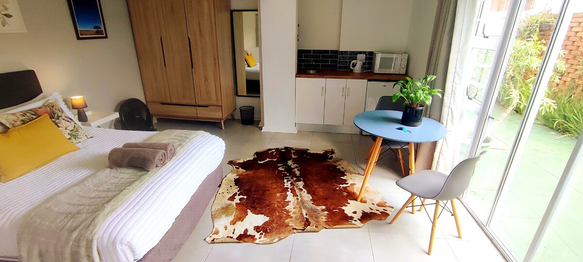 こちらの静かでプライベートなおしゃれなお部屋で、のんびりとおくつろぎください。 ユニット1は、大人2名様と子ども2名様に適した新築の高級コテージです。 このモダンな寝室には、ダブルベッドとシャワー付きの専用バスルームが備わっています。 設備の整ったキッチンとソファベッドを備えたリビングエリアがあります。 すべてのショッピングモールの中心部に位置し、高速道路にも近く、ポートエリザベス周辺のすべての観光スポットに簡単にアクセスできます。 ご家族、Z世代、ビジネスの方々、どなたでも歓迎いたします。