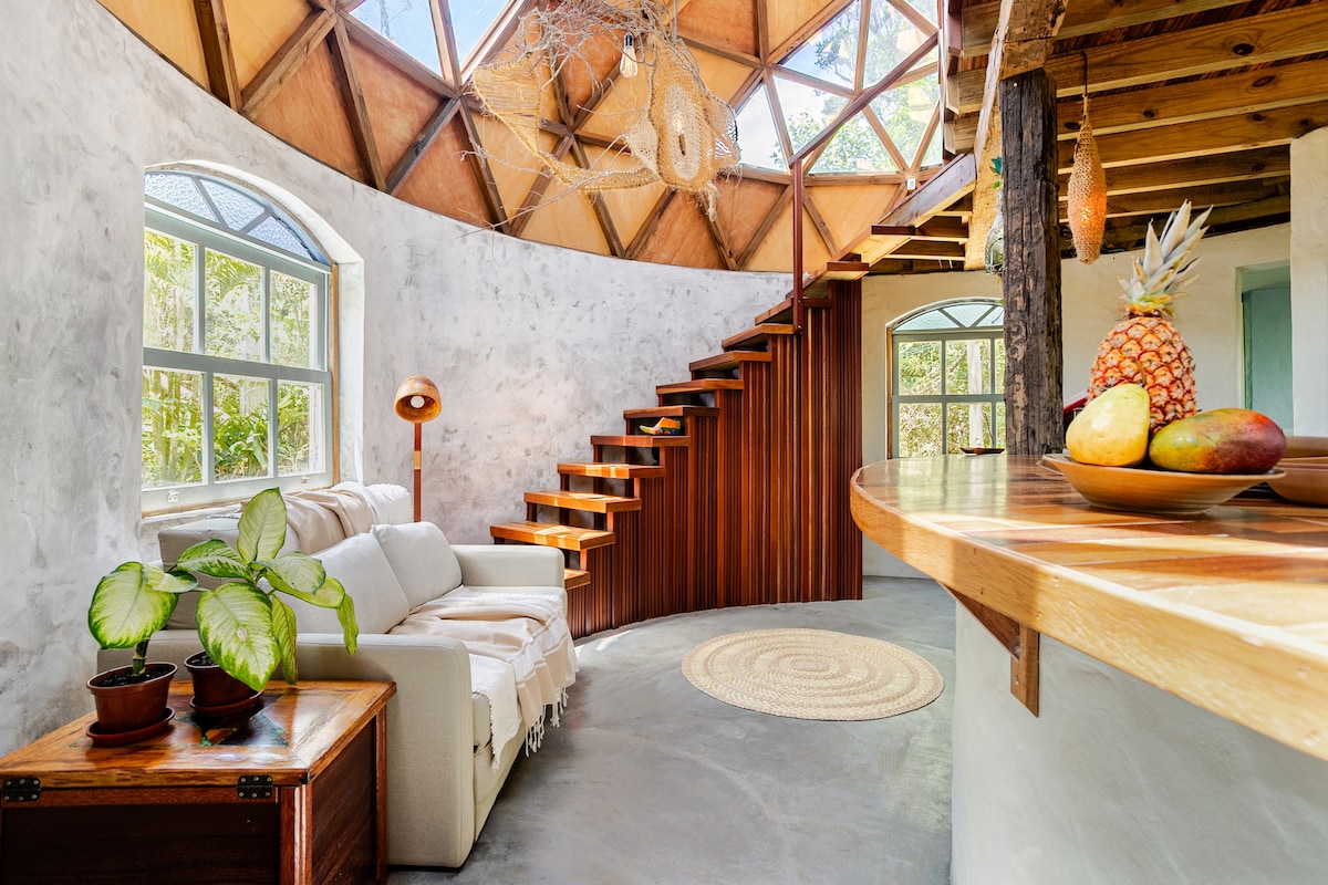 ジオデシックドーム、プール、滝、サーフィンから10分