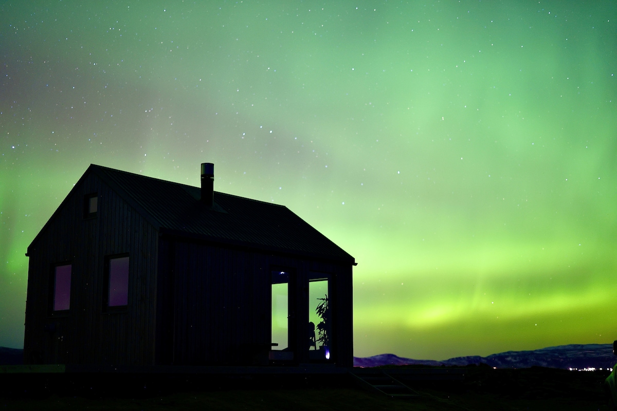 居心地の良い小さなキャビンへようこそ。 ロマンチックで穏やかな雰囲気の中でリラックスする絶好の機会となります。 1 ~2名様に最適で、滞在のハイライトは、山の景色を眺めながらの屋外地熱シャワーになるでしょう。 一年で最も暗い月に、オーロラの下でシャワーを浴びることを想像できますか? それは可能です! お子様および乳幼児連れの方はご予約いただけません。