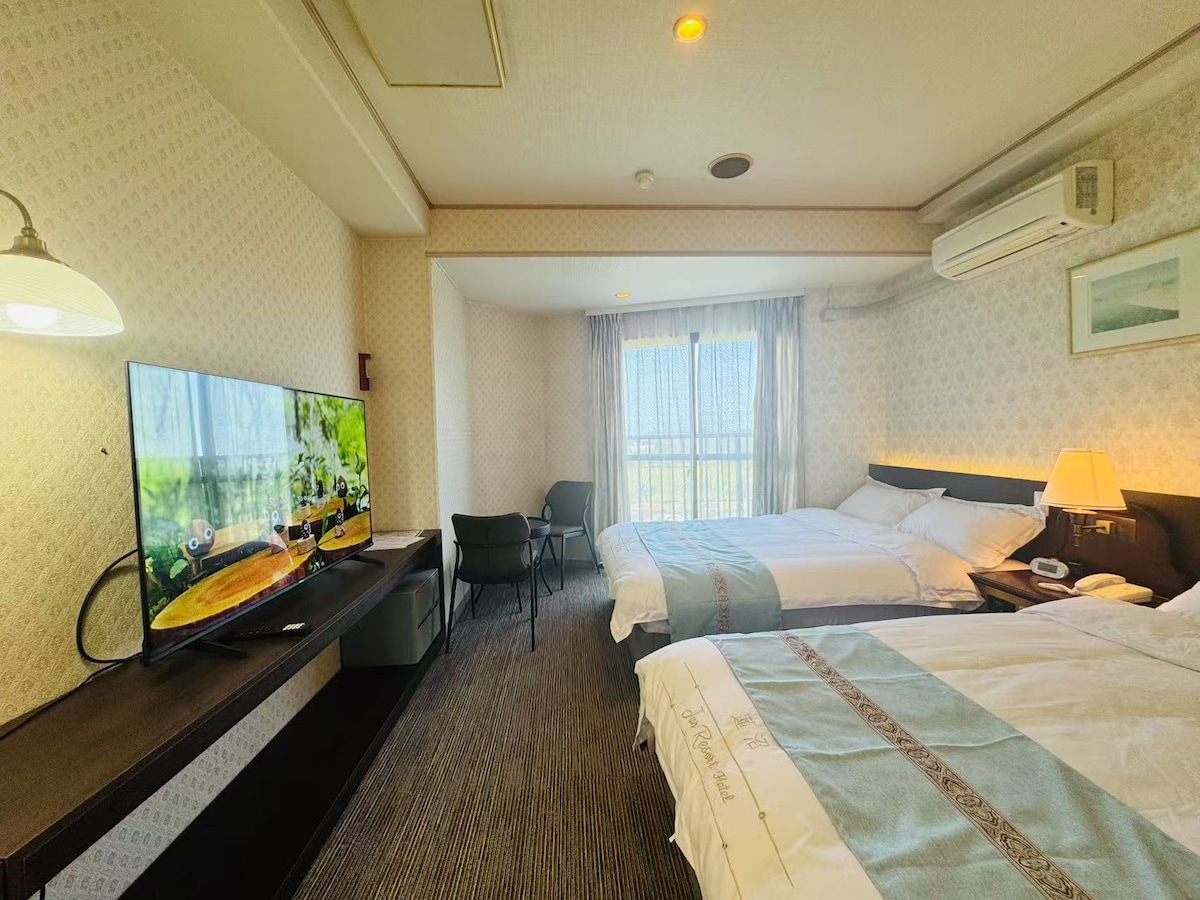JUNリゾートホテルのツインルーム2室、ダブルベッド4台、最大8名様