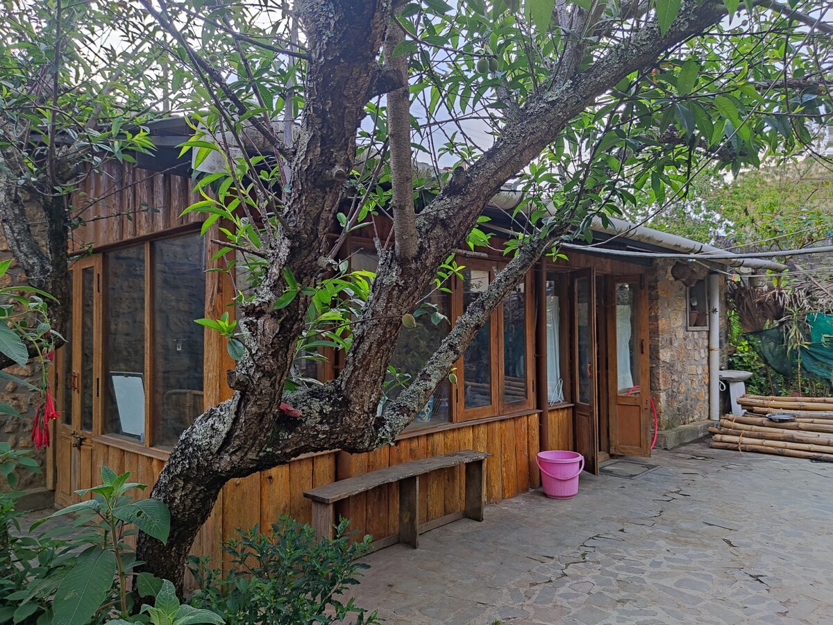 このコテージは、農場から最も遠い場所にあるため、The Hermitと呼ばれています。そのため、ここに滞在する人は山の孤独な体験を本当に楽しむことができます。最大3名様まで宿泊可能です。 すべてのコテージと共用のダイニングルームには、Wi-Fi、24時間365日対応の温水、電源バックアップがあります。車でアクセスでき、農場に駐車場があります。 農場では、家庭風のベジタリアン料理とノンベジタリアン料理を提供しています。 朝食- 1人あたり250ルピー 昼食- 1人あたり300ルピー 夕食 - 1名様400ルピー