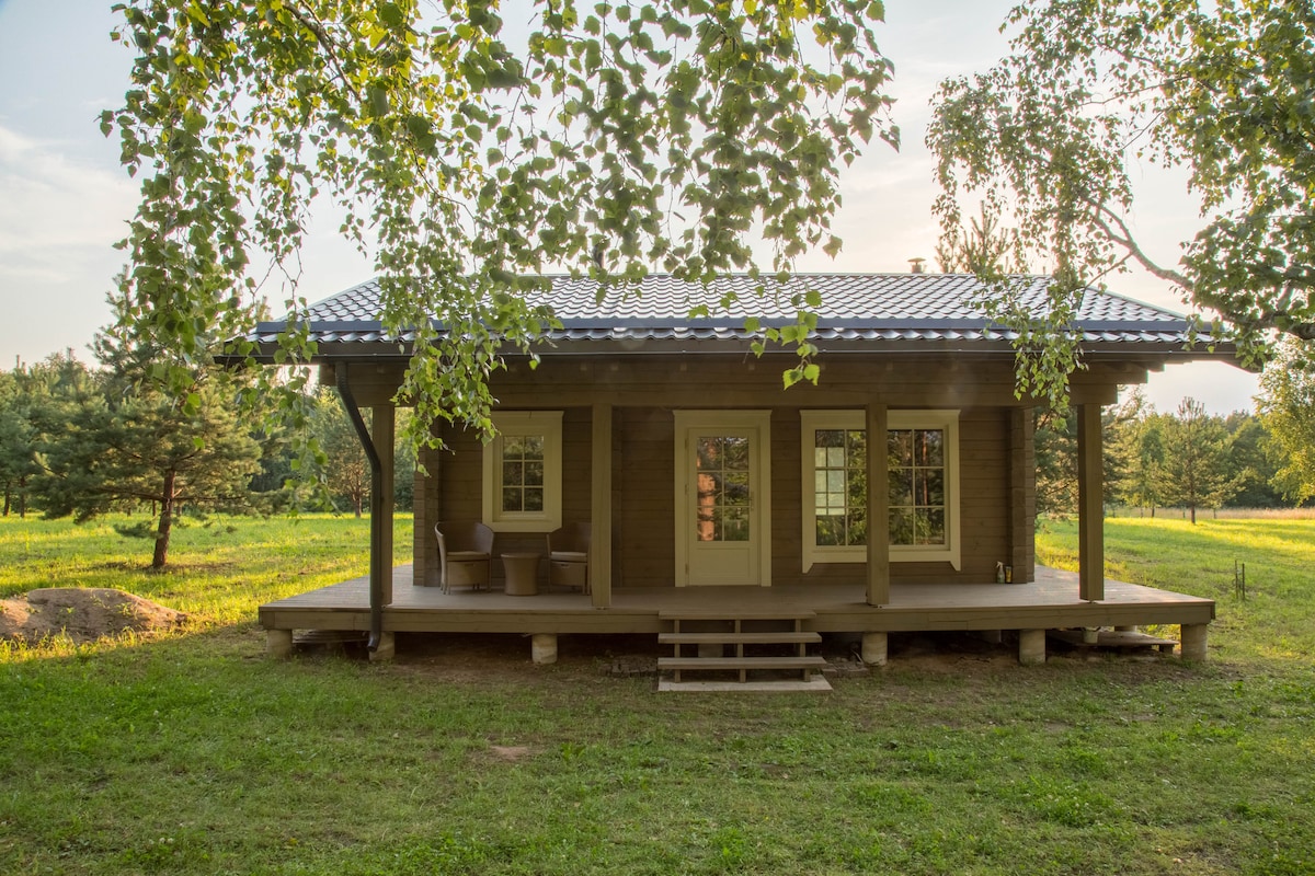 1家族用の小さく居心地の良い家です。森とジェイメニス湖の隣にあります。平日はとても静かです。週末は近くにキャンプ場があるので、騒がしいことがあります。 家にはすべてのアメニティが備わっており、セルフチェックインが可能です。ダブルベッド1台、ソファベッド1台、折りたたみベッド1台(リクエストに応じて)。 釣りやその他のウォーターアクティビティに最適な場所です。家のすぐ近くにカヤックレンタル所、テニスコートがあります。ジャグジーとSUPボードは追加料金です