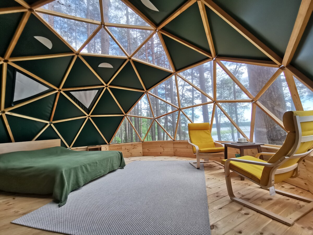 最後に木々が頭上で踊るのを見たのはいつですか? ドームにはダブルベッド、食器棚、そして素敵な朝食を楽しめるアームチェア付きの小さなテーブルがあります。巨大なパノラマ窓からは、星を眺めたり、美しい湖の景色を楽しむことができます。森をより近くで、より深く感じるために、露天風呂・ジャグジー付きの広々とした屋外テラスで過ごすことをおすすめします(1日あたり60ユーロ)。 キャンプ場には電気がないので、Wi-Fiもありません。 ゴミは持ち帰ってください。