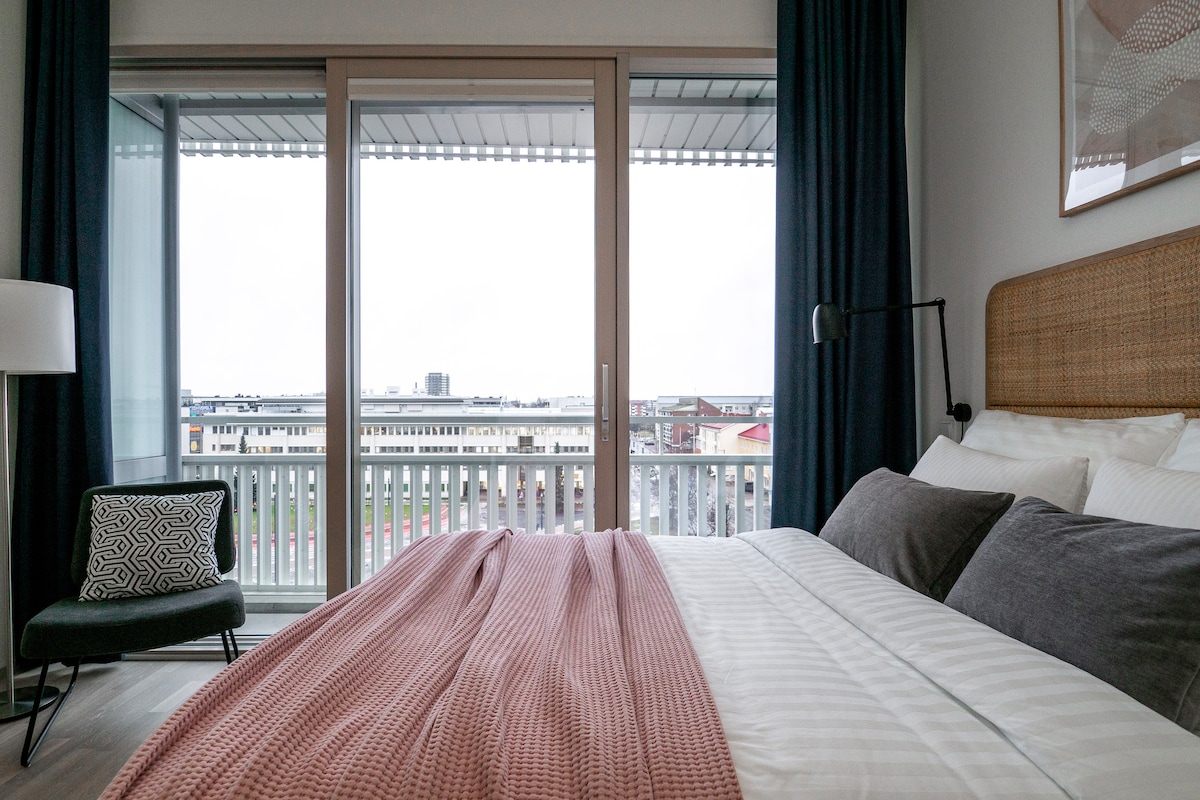 ダウンタウンまで徒歩10分のモダンな47.5平方メートルの1ベッドルームアパート。 公共交通機関へのアクセスがよく、市内のすべてのアメニティ・設備にアクセスできます。 アパートには、設備の整ったキッチン、49インチUHDスマートテレビ、高速Wi-Fi、専用サウナが備わっています! 寝室にはクイーンサイズのベッドがあり、リビングには80cmの追加マットレスがあります。 アパートは3名様のグループに適しています! 暖かいガレージに駐車できます。 電気自動車の充電は20セント/kWhです。