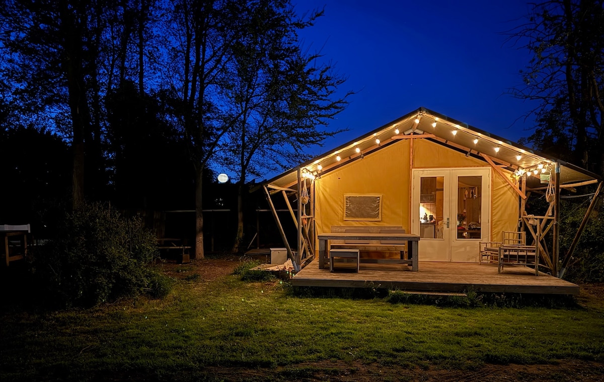 Betuwe Safari Stopover: een kleine, gezellige safaritent voor max. 2 personen. Met terras, verlichting, elektriciteit en gedeelde badkamer en kitchenette in de algemene ruimte. Pluk fruit van de bomen op het terrein en geniet van de prachtige omgeving. Perfecte tussenstop voor avonturiers die de Betuwe willen verkennen en willen genieten van een unieke overnachting in de natuur.