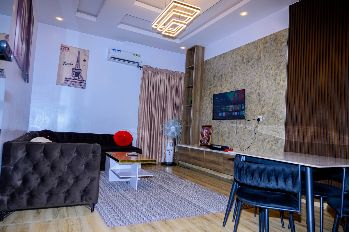 ラゴスのホームベースは12月に設定されています。 穏やかなOmole Phase 2にあるモダンな2ベッドルームで、24時間365日安定した電力、冷たいエアコン、高速Wi-Fi、65インチのスマートテレビ、PS5を備えています。快適さと親しみやすいラゴスの温かみを備えています。 イケジャの主要スポットに近いです。リターントリップ、ソフトライフブレイク、家族旅行、出張に最適です。 安全でプライベートが確保でき、落ち着いて過ごせます。