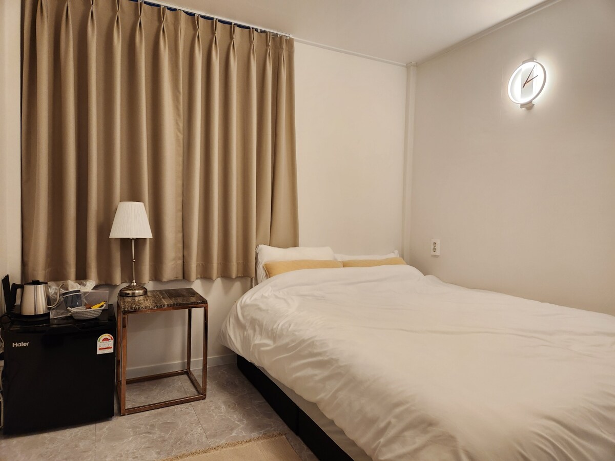 クイーンサイズベッド1台(クイーンサイズベッド) お部屋は1名様用ですが、2名様で追加料金で宿泊できます。 清潔なリネンとタオル、 Wi - Fi、テレビ、 無料駐車場、 ーーー専用バスルーム、 冷蔵庫・電子レンジ・シャンプー・クリーナー(歯ブラシなし) ドライヤー(Hair dryer) -チェックイン前またはチェックアウト後に荷物を預けることができます -バス停( Naedodong - dong )まで300 m -空港から15分(タクシー料金は7 ~ 8000ウォン) -空港から315または316の直行バスで30分以上かかります - Ihoビーチまで徒歩10分 -バス停の近くの地元の食料品店