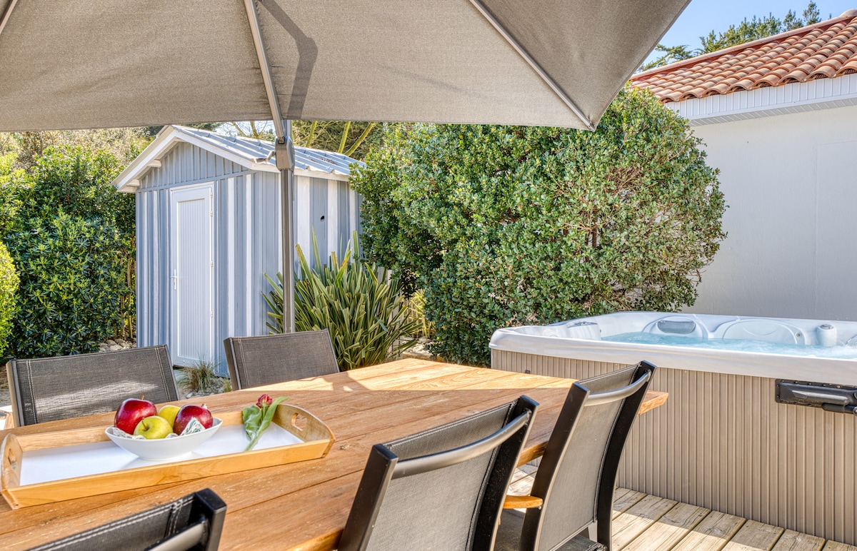 Discover Villa Ker Tesson, a beautifully renovated authentic fisherman's house located just 700 meters from Port Joinville. Perfect for family or group vacations, it combines traditional charm, modern comfort, and a private spa for unforgettable relaxation. Special offer: Contact us to enjoy -30% on your boat crossing reservation!
