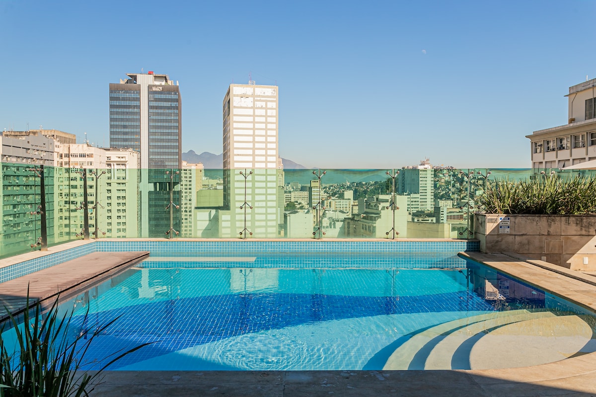 レビュー23件、5つ星中4.96つ星の平均評価Studio completo c/piscina, academia e a/c CentroRJ