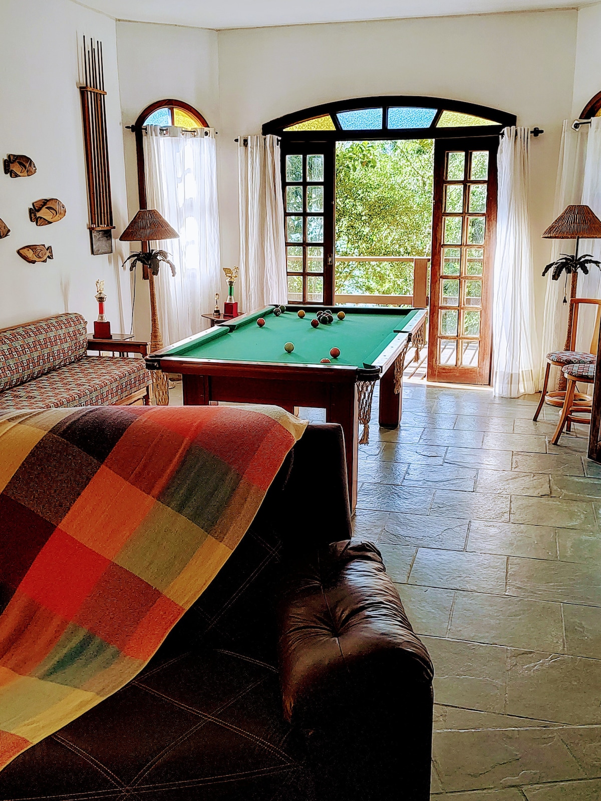 Comfort, luxury, and nature all in one place! The house features 4 suites with air conditioning, private bathrooms, and closets. Bed linens and towels are provided for the use of the suites. We have a heated pool, deck, gas grill, and equipped kitchen. The house has the support of a professional cleaner who assists with the maintenance of the premises throughout the day (except for dishwashing). Located in a secure, gated community, just minutes from the best beaches of Ilhabela.