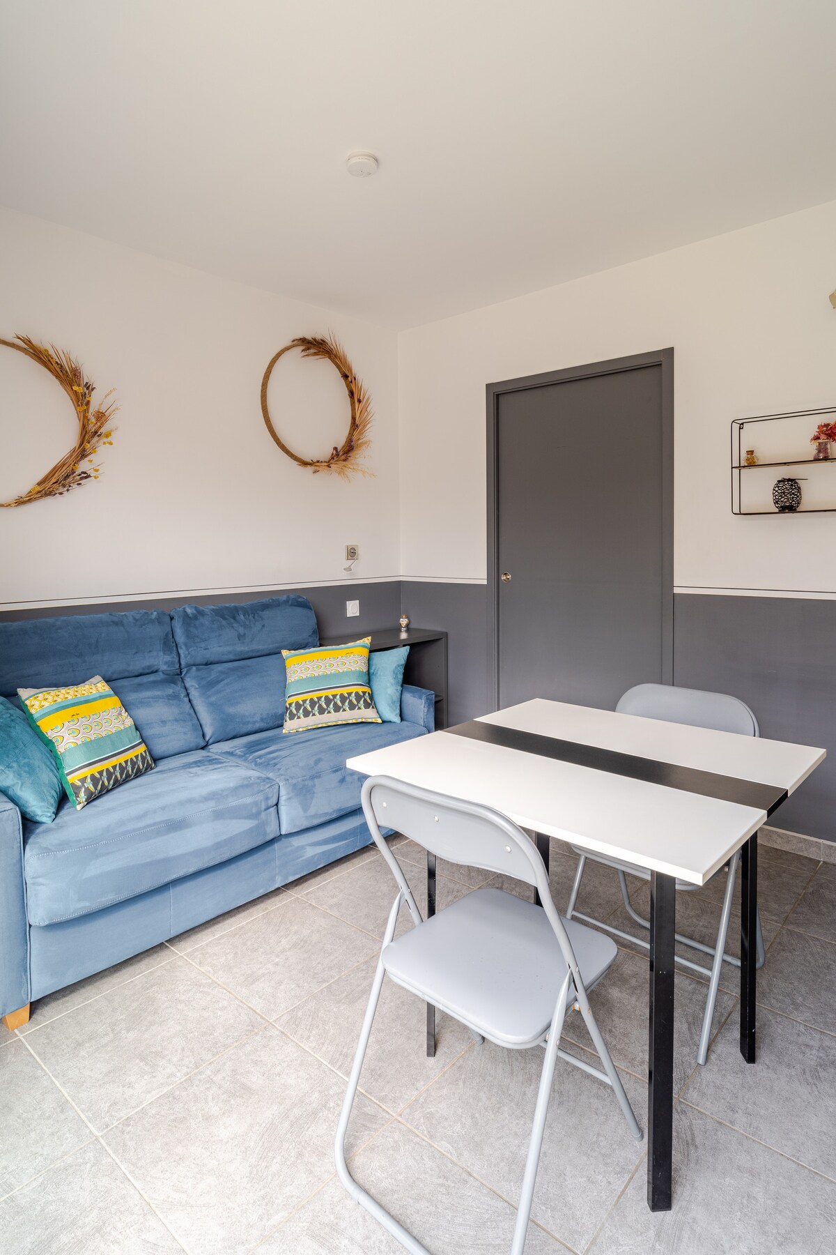 ゲストハウスの隣にある30平方メートルの空調付きワンルームでリラックスしてください(6月から9月まで温水プール)。共有の屋外スペース(小さな鶏小屋、カメ、2匹のドッグスプイツ)。プライバシーは確保されます。ワンルーム:ソファーベッド(本物のマットレス140x190)、簡易キッチン、冷蔵庫、ドルチェグスト、遮光カーテン。リネンは含まれています。バスルーム:シャワー、タオル乾燥機、トイレタリー。卓球台。スーパーマーケット&薬局まで100メートル。