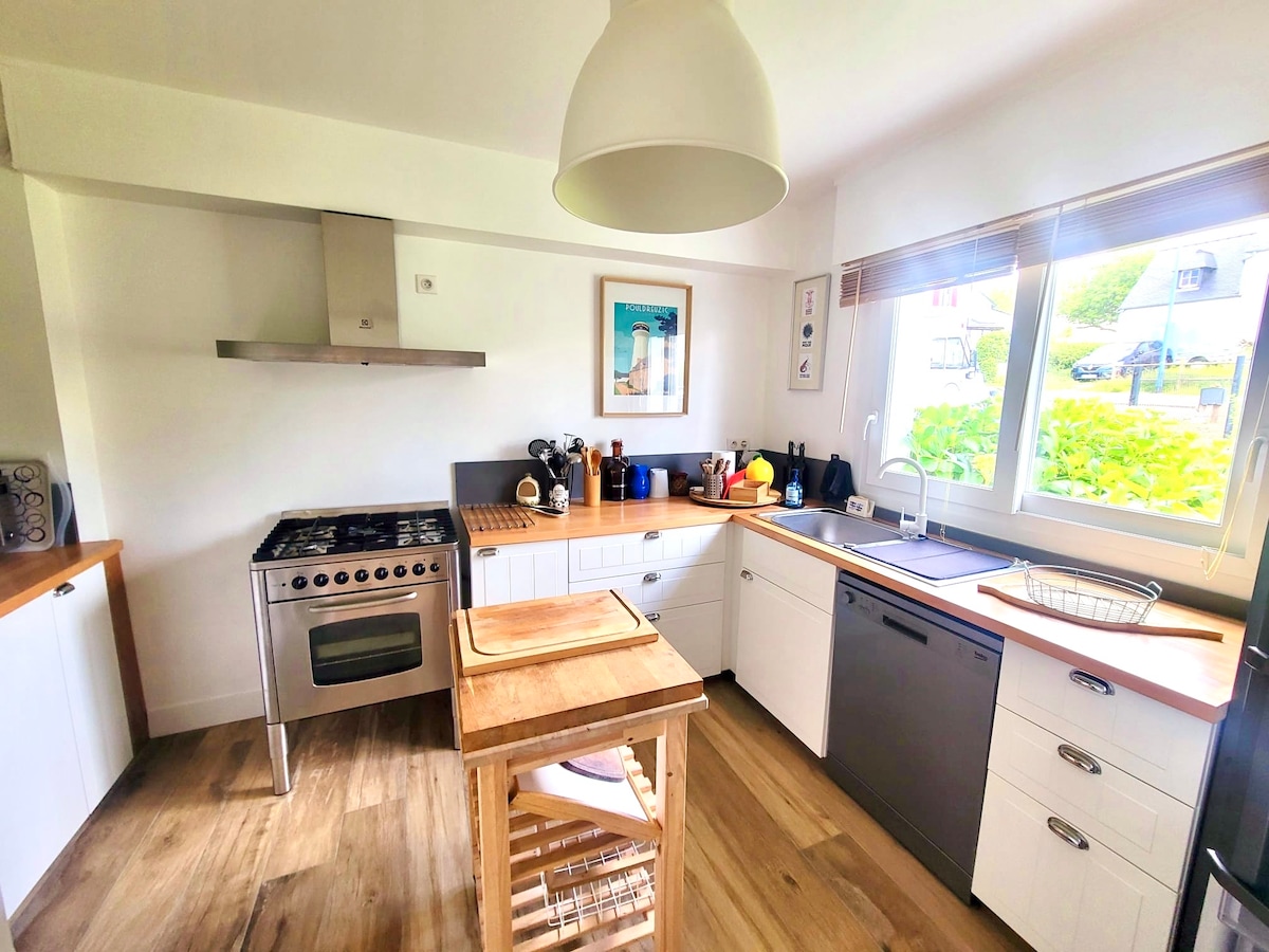 緑の道の近くにある2000平方メートルの木々に囲まれた家。 ブレストの港(1 km)、ハイキングコース(GR34)、カマレ/ル・フレ/クロゾンにつながる近くの緑の道の近くの「ストレベ」(サン・フィアクル近く)の小さな集落にあります。 この家は、家族でのんびりしたり、自転車でのんびりしたりするのに最適です。ショッピングセンターは5 km(クロゾンとカマレ)。砂利の岸辺は1 km、砂浜は3 kmです。 2歳未満のお子様には適していません。