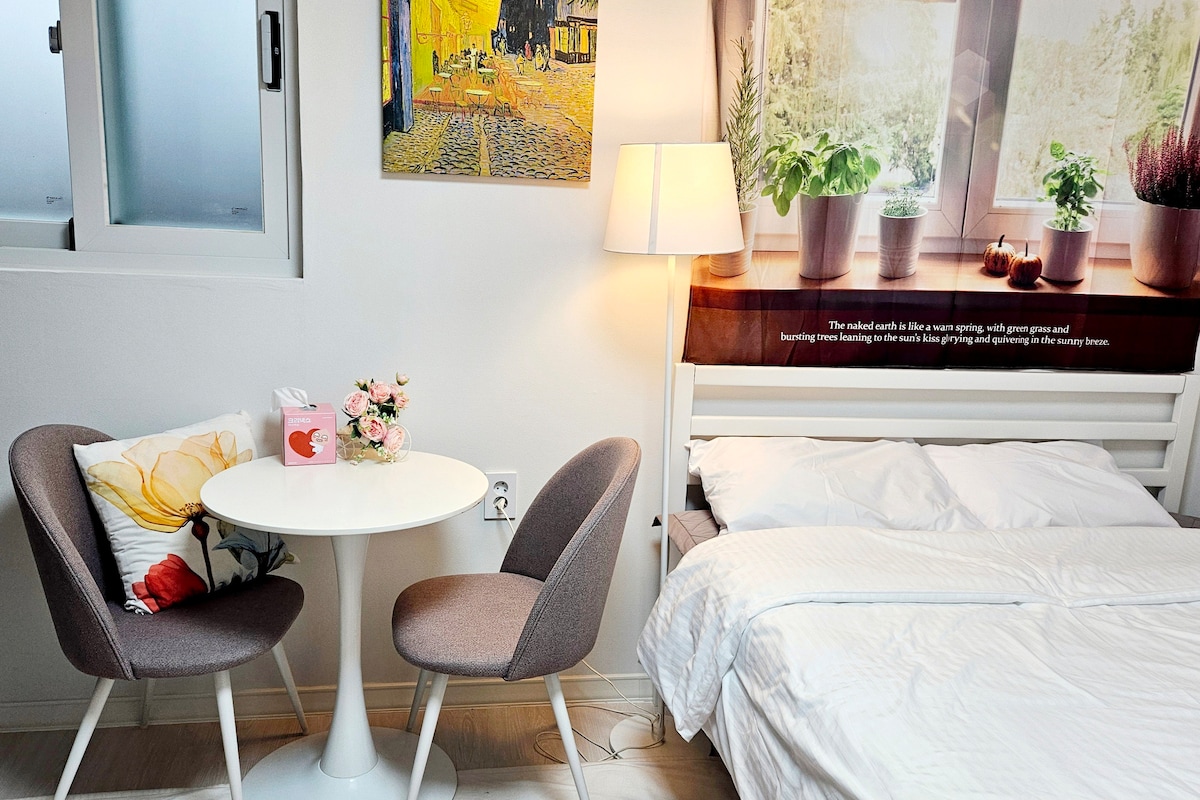 快適な雰囲気の広々とした古い石造りの家の1階です。 約20平方メートルのスペースに、リビングとキッチン1室、寝室2室、トイレ1室があります。 キンテックス(15分)とダエハバ역(5分)の近くの集合住宅にあり、騒音なしで快適に過ごすことができます。 近くには、マート、コンビニ、パン屋、コインランドリー、レストランなど、さまざまな便利な施設が近くにあります。 快適な雰囲気の清潔な家。 当宿泊施設には2部屋/4台のベッド、キッチン付きのリビングルーム、トイレがあります。 近隣にはキンテックス(15分)と大化駅(5分)があります。 近くには市場、コンビニがあります。