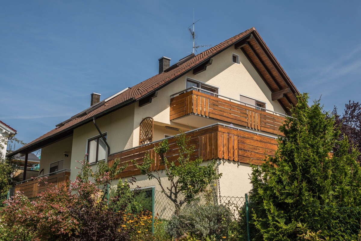 屋根裏にある快適なアパートで、独立した玄関と階段、清潔なバスルーム、小さなキッチン、ボーデン湖とスイスアルプスを見下ろすバルコニーがあります。バルコニーで朝のお茶やコーヒーを楽しみ、まるでリトリートにいるような気分になります。設備の整った共用キッチンを無料でご利用いただけます。家の前に専用駐車場があり、キャラバンやキャンピングカー用のスペースもあります。部屋は週単位で貸し出しています。
