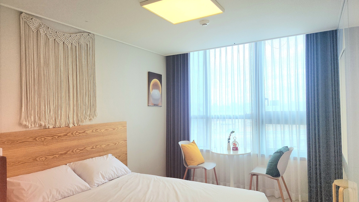 ソウルから近い仁川西海の広大な景色、 忙しい日常の中で少し休息が必要なとき 遊びに来てください:) 清潔に管理しています。 海と緑の公園を見下ろす屋外テラス ガラス窓から見える涼しいオーシャンビュー、 快適なレジデンスの2階建てワンルームの宿泊施設 ▪️仁川空港から車で15 ~20分 ▪️インスパイア、パラダイス、乙王里ビーチなどの主要観光地まで車で25~30分 ▪️九邑バター桟橋から車で2 km、5 ~7分 ▪️商店街の中心部、徒歩5分圏内のレストラン、カフェ。建物1階のコンビニ ▪️ Netflix ▪️標準2名様~最大4名様(2名様を超える場合は追加料金がかかります) ▪️利用時間 - チェックイン:午後4時 -チェックアウト:午前11時 *アーリーチェックイン/レイトチェックアウトには追加料金とスケジュール調整が必要ですので、事前にお問い合わせください。 ▪️ペットの同伴はできません ▪️室内喫煙は厳禁です ▪️豚バラ肉のバーベキュー不可、肉・魚・エビのグリル不可 ▪️駐車場(1台無料)- 建物B1~B4/駐車場-宿泊施設接続(2台以上追加料金)