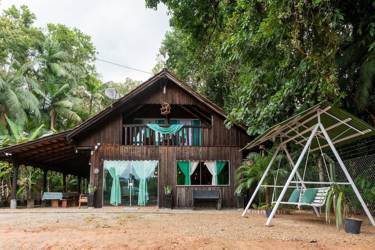 Esta é nossa cabana de fim de semana na natureza, e nos momentos em que não estamos ocupando, ficamos muito felizes em compartilhar esse lugar especial com vocês. Há muito amor e simplicidade neste lugar que foi construído com nossas próprias mãos, durante a pandemia. Temos uma rede horizontal, uma tirolesa e um balanço "gigante" para crianças e adultos se divertirem muito! A cabana é cercada pela natureza, onde vivem aves e animais silvestres, como tucanos, sabiás, esquilos e macacos.
