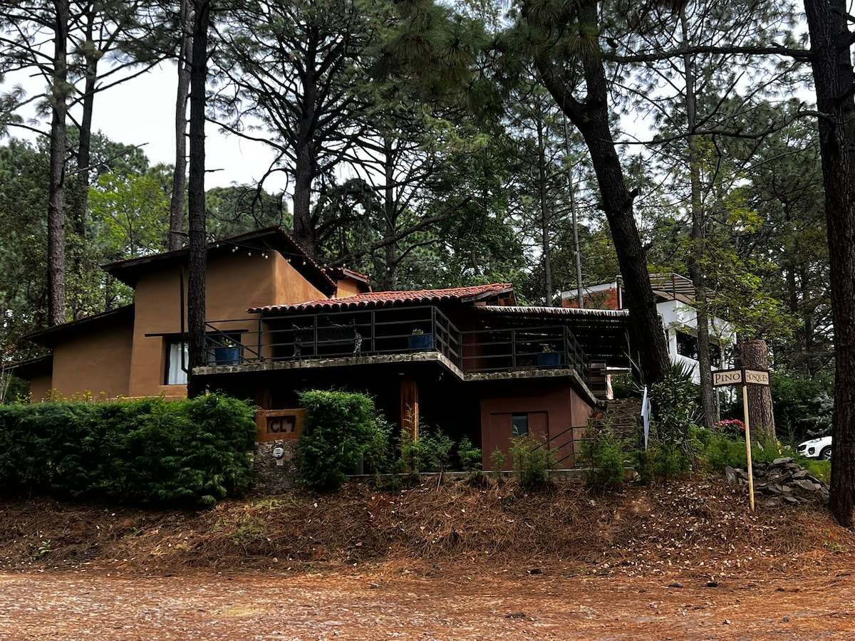 Relájate en esta escapada única y tranquila. Disfruta de una salida en el bosque con las comodidades de la cuidad. Dos habitaciones una en la planta superior con baño competo cada una, frigobar, terraza,con cama king size y la otra con dos camas matrimoniales. En el exterior, encontraras una encantadora fogata para noches acogedoras bajo las estrellas, Tienes acceso a un comedor al aire libre que cuenta con parrilla y asador para disfrutar de carne asadas a mitad del bosque.