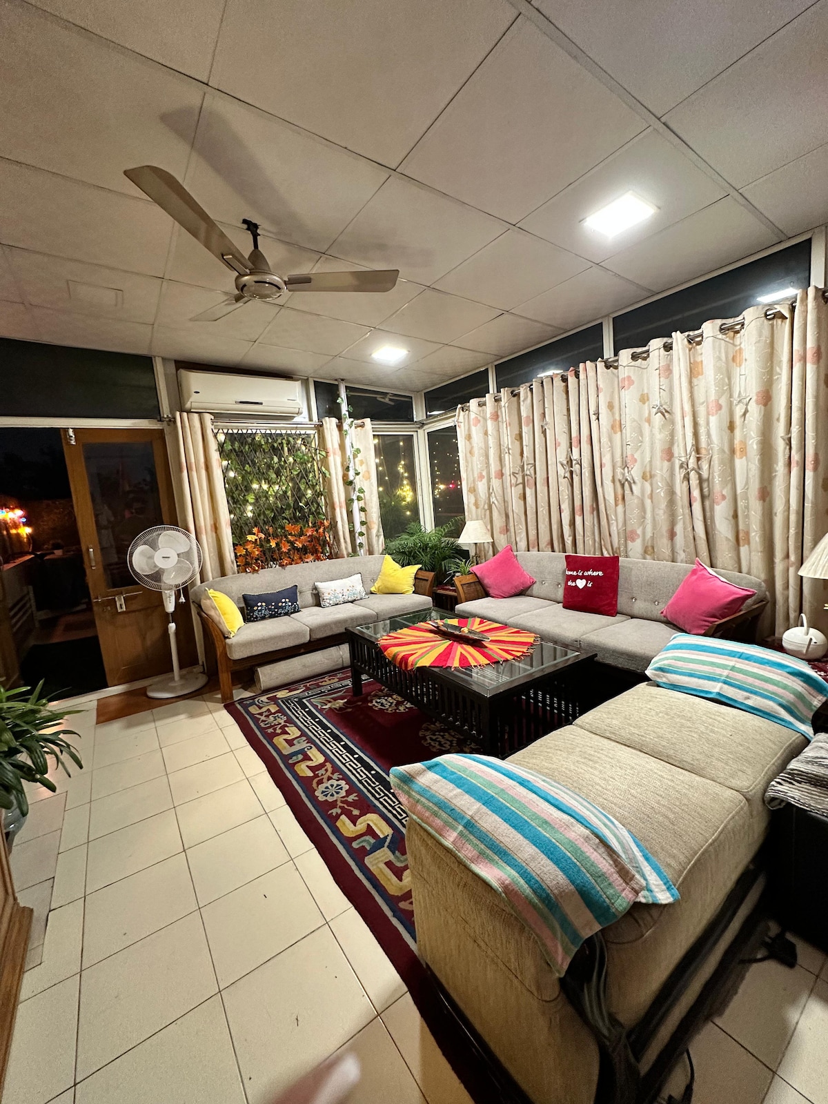 暖かく居心地の良い雰囲気のBoho-luxury 1BHKには、クッション付きスイングとフェアリーライトが付いた専用バルコニーがあります。✨ サウンドバーとサブウーファーを備えた55インチのスマートテレビで、映画館のような体験をお楽しみください。エアコン、空気清浄機、IHクッカー、冷蔵庫、RO、調理器具、紅茶/コーヒーをご用意しています。🙌🏻 Shalimar Bagh Metroの近くにあり、KFC、Domino's、McDonald'sからわずか100 m、PVRとPacific Mallにも近いです。📍 デートや誕生日に最適で、ご要望に応じて装飾をご用意できます。❤️