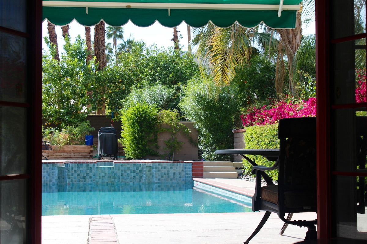 専用の入り口がある美しいスイートで、専用のバスルーム、見事な緑豊かな芝生、山の景色、小石のテクプールが見下ろせます。リラックスして楽しむのに理想的です。 砂漠の中心部にあり、有名なエルパセオの高級ショッピング街まで徒歩5分です。インディアンウェルズ・テニスガーデン、レストランまで数分、パームスプリングスに近いです。アメニティ:テレビ、マイクロ、キューリグ、冷蔵庫。 *プールは開放されており、もう1つのスイートが予約されている場合は、追加の2名のゲストとのみ共有されることがあります