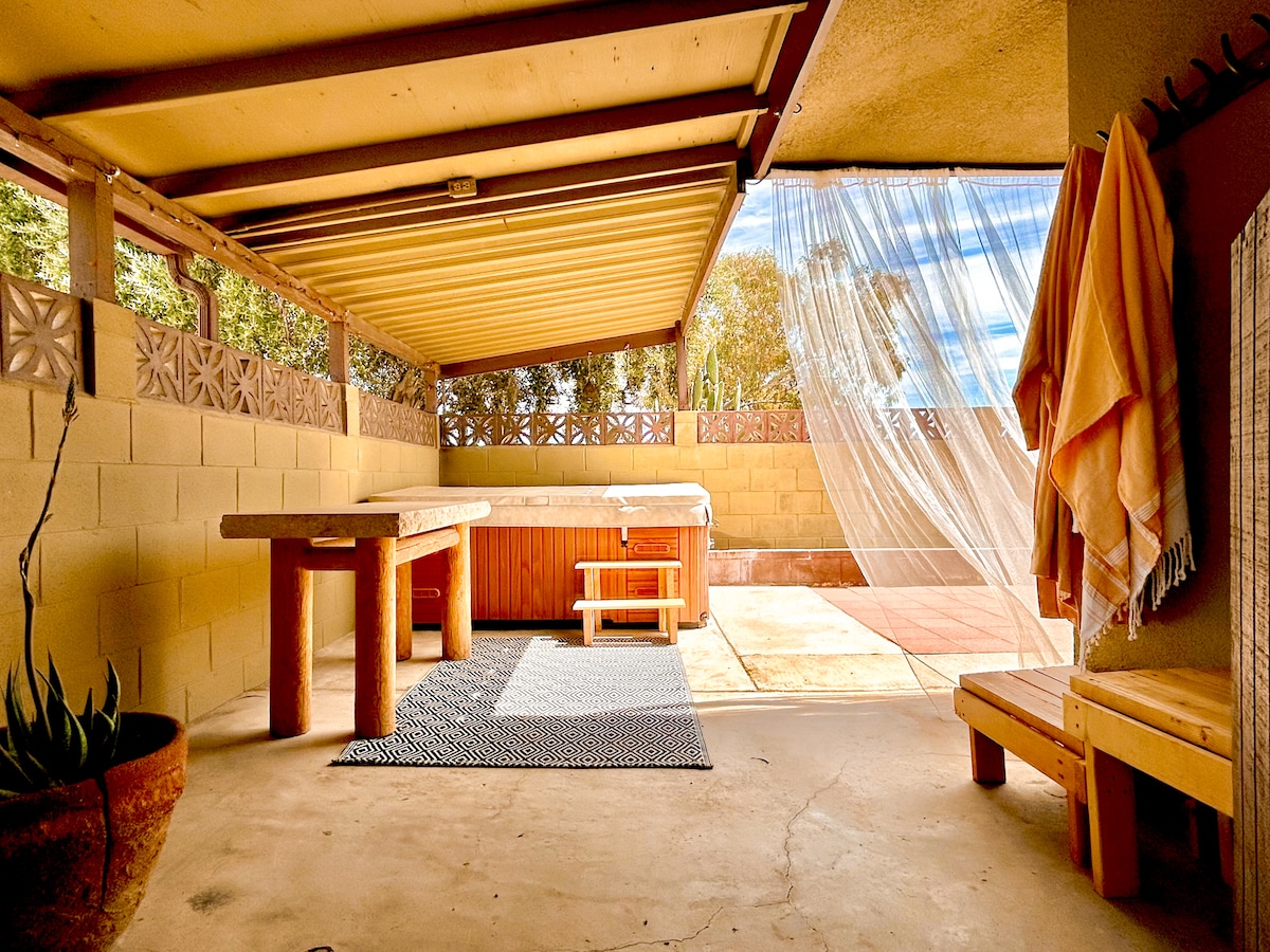 ハイデザートにあるカウボーイモダンな小さな家、ジャグジー付き