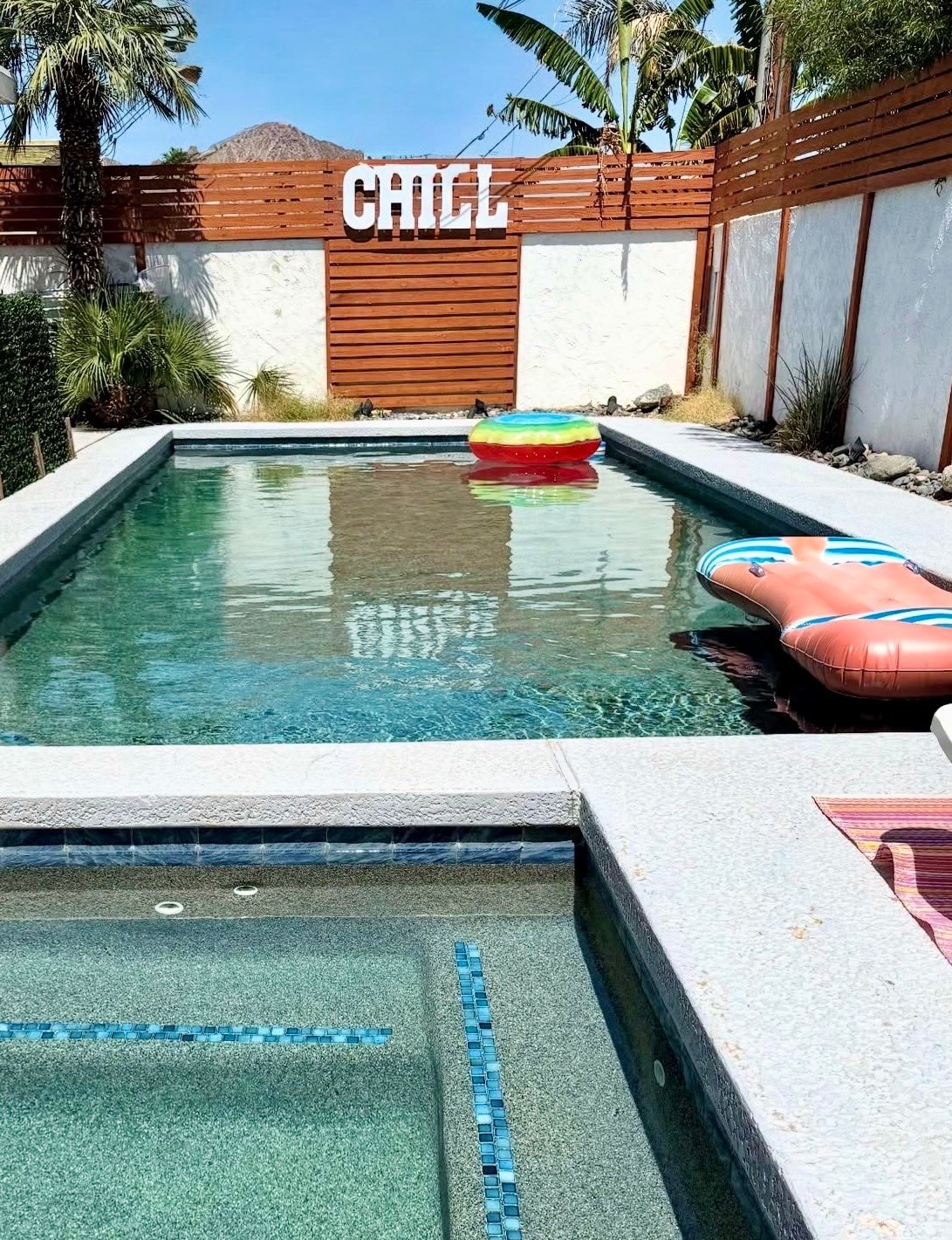 Remodeled, modern, walking distance to El Paseo! Our home is the perfect place to recharge and enjoy everything the desert has to offer! Featuring 2 bedrooms, one with 2 XL twin beds that can convert to a Cal King instead! 2 baths, high-speed internet, Free Level 2 EV Charging, pool and jacuzzi, fully equipped kitchen, new appliances, fire pit and loads of space for indoor/outdoor enjoyment. Located within walking distance of El Paseo, exquisite dining, shopping and even The Living Desert zoo!