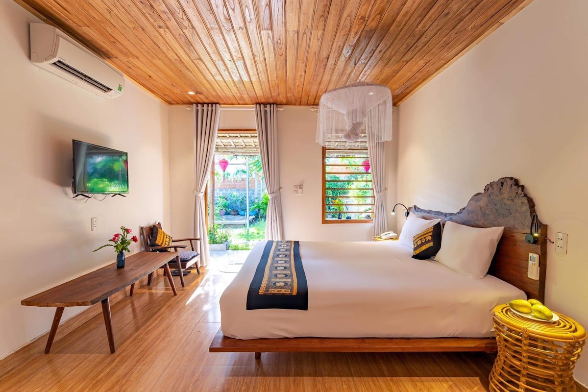 無料:朝食、プール、観光マップ(2名様用)。 こちらの個室は、チャンアンリトリートにある13棟のバンガローのうちの1棟です。 部屋の広さは20平方メートルで、バルコニー、庭園、山の景色が楽しめます。 お部屋には1.8mx2.0mのダブルベッドが1台あります[注:シングルベッド2台のオプションがあります。必要に応じて手配しますので、メッセージを送ってください]、シャワー、エアコン、暖房、扇風機、冷蔵庫、ヘアドライヤー、ケトル、その他の必要な個人用品など、シャワー付きの専用バスルームがあります。