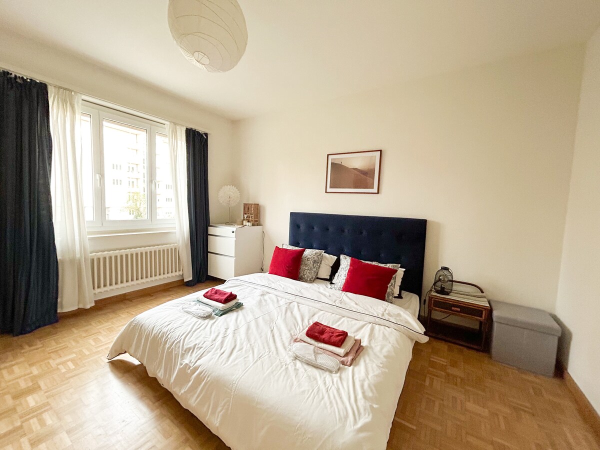 アパートはジュネーブの中心部、サルヴェット地区にあります。とても広々としており、2つのバルコニー付きの寝室が2つあり、高層階にあるため、明るい快適な空間です。 アパートには、独立したトイレとバスタブ付きのバスルームがあります。設備の整ったキッチン(食器洗い機、オーブン、コンロ等)。また、洗濯機もご利用いただけます。キッチンはリビングとダイニングに面しているので、広い生活空間となっています。