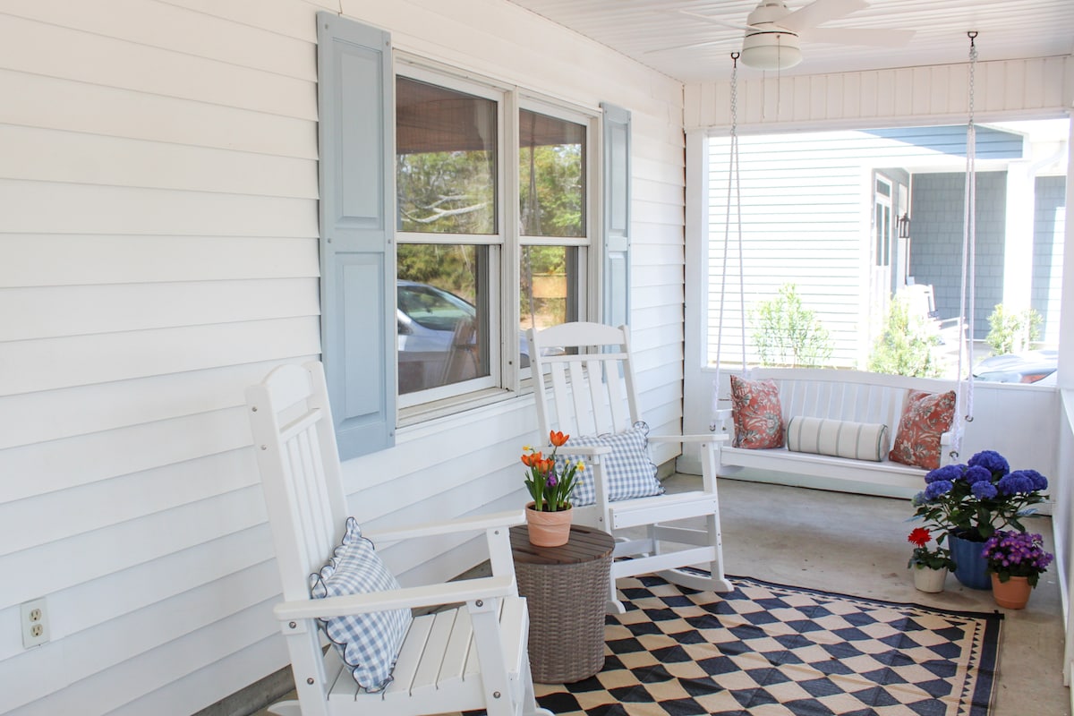 ビーチまで徒歩ですぐの場所がお好きなら、この宿泊先はおすすめです! ビーチまで徒歩5分で行けるよう、ビーチチェアとカートをご用意しています。 キッチンで食事をしたり、ベッドでハニーブレックファストを楽しむことができます。 夏季には近くでファーマーズマーケットが開かれ、毎週金曜日の夜にはコンサートがあります。同じエリアにはテニスコート、ピックルボール、スプラッシュパッドがあり、涼しく過ごすことができます。 Wi-FiとRokuを提供しています。 裏のポーチにはガス暖炉があります。 室内暖炉の使用は季節限定です。